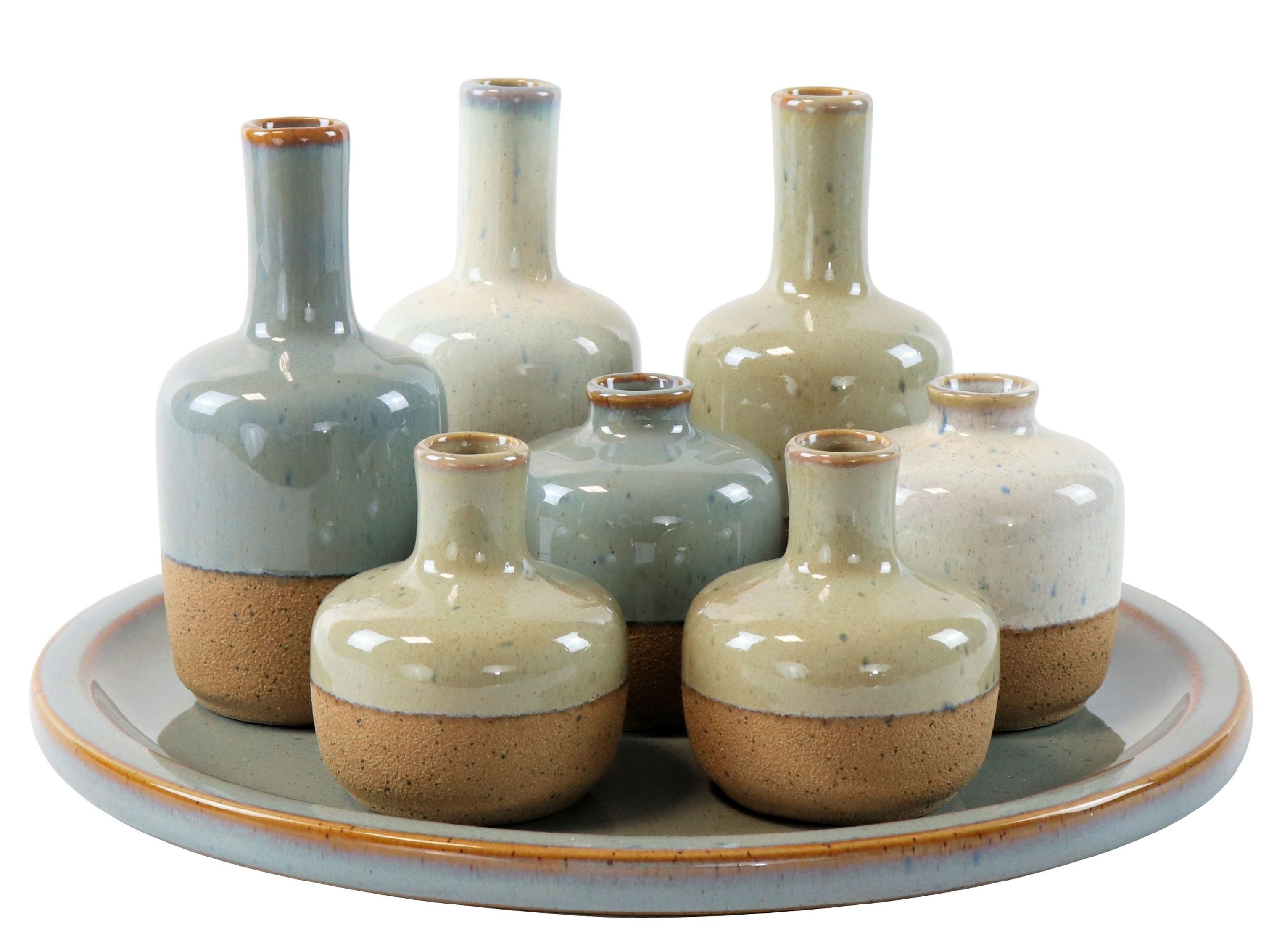 FURNARO Dekovase Skagen (8 St), 8-teilig, mit unterschiedlich geformten Mini-Vasen & Keramikteller