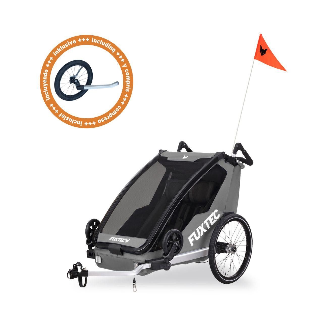 Wir möchten euch unser bisher sportlichstes neues Mitglied der FUXTEC-Familie vorstellen - den neuen Fahrradanhänger Sportfux FX-FA1. Ein sportlicher Fahrradanhänger für bis zu zwei Kids, welcher auch im Handumdrehen zu einem Buggy umgerüstet werden kann. Unser neuer SPORTFUX bringt folgende Eigenschaften mit: Im Inneren befinden sich zwei sichere Plätze für die Kids mit 5-Punkt-Anschnallgurten - Vorne links und rechts ist jeweils eine kleine Innentasche für allerlei Kirimskrams angebracht. Eine große und praktische Hecktasche die wenn man sie nicht braucht, platzsparend eingeklappt werden kann! Große und bei Dunkelheit gut sichtbare Reflektoren an der Seite und am Heck des Wagens (gemäß StVO)- Der Schiebegriff bei Buggyfunktion kann auf jede Größe variabel eingestellt werden und ist bei Nichtgebrauch leicht und einfach abzunehmen. Bei Bedarf kann ein Regenschutz per Clip auf das Mückennetz angebracht werden - Inklusive Jogger-Rad zum schnellen Umbau zum Buggy/Jogger.