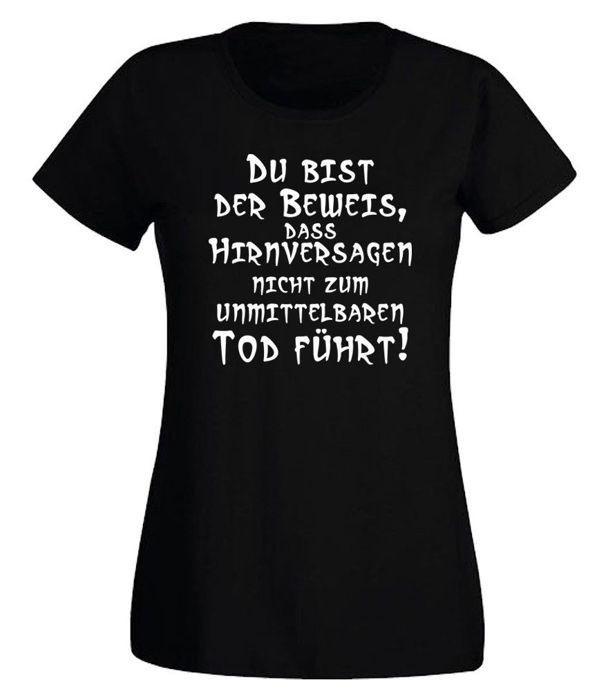 G-graphics T-Shirt Du bist der Beweis, dass Hirnversagen nicht zum Tod führt! Slim-fit Damen T-Shirt mit trendigem Frontprint