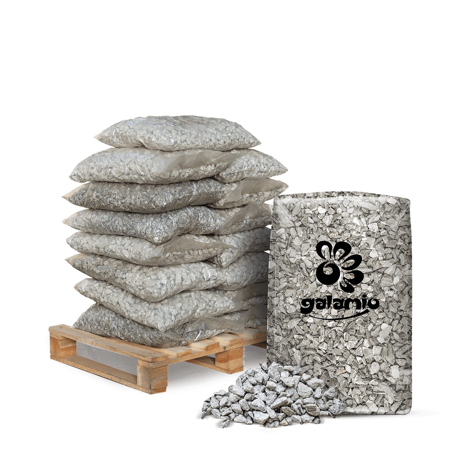 Granitsplitt der Marke GALAMIO® ist ein ästhetischer und funktionaler Naturstein für Garten und Bau. Mit seiner Körnungsgröße von 16 bis 22 mm und hellgrauer Farbe mit feiner Maserung ist er ideal für Wege, Steingärten und als Belag, der dank seiner Bruchkanten stabil verkeilt. Witterungsbeständig und belastbar, eignet er sich auch für Straßenbau und dekorative Gartenarrangements.