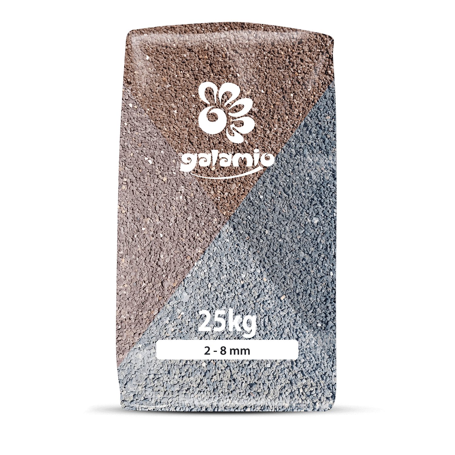 Natürlicher Lavamulch Farbmix von GALAMIO® ist ein hochwertiges Naturprodukt aus der Eifelregion. Das Pflanzgranulat besteht aus erkalteter, erstarrter Lava, wird in der gewünschten Körnung gesiebt und sauber abgefüllt – völlig frei von Zusätzen. In der feinen Körnung von 2-8 mm ist der Lavamulch geruchlos, langlebig und verrottet nicht. Seine poröse Struktur lüftet den Boden, schützt vor Staunässe und speichert Wasser, das bei Trockenheit langsam abgegeben wird. Dadurch bleibt der Boden optimal belüftet, temperaturausgeglichen und geschützt – im Sommer vor Austrocknung und im Winter vor Frost. Der Farbmix und die formstabile Beschaffenheit machen Lavamulch zu einem dekorativen Hingucker. Als Deckschicht unterdrückt er Unkraut, indem er das Eindringen von Licht verhindert. Dies reduziert den Pflegeaufwand und minimiert das Gießen an heißen Tagen. Auch für den Teichbau eignet sich Lavamulch hervorragend: Er filtert Wasser, fördert nützliche Bakterien und schafft eine gesunde Umgebung für Pflanzen. In der Aquaristik unterstützt er das Wurzelwachstum und bietet Mikroorganismen eine ideale Grundlage. Dank seiner Hitzebeständigkeit ist Lavamulch ebenfalls perfekt für Feuerstellen geeignet, da er Wärme speichert und eine angenehme Atmosphäre schafft. Ob für Beete, Wege, Steingärten oder Teiche – Lavamulch überzeugt durch Vielseitigkeit und Funktionalität. Bestellen Sie die GALAMIO® Lavamulch ganz bequem und erhalten Sie die Ware direkt nach Hause geliefert. Die Lieferung erfolgt in praktischen 25-Kilo-Säcken, die ordentlich auf einer Palette gestapelt sind und per Spedition zuverlässig ankommen. Je nach Bedarf können Sie zwischen 12 oder 40 Säcken pro Palette wählen. ACHTUNG! Bei diesem Produkt findet keine Farbsortierung im Vorfeld statt. In einer Lieferung kann Lavamulch in den Farben Rotbraun, Hellgrau, Beige oder Anthrazit vorhanden sein.
