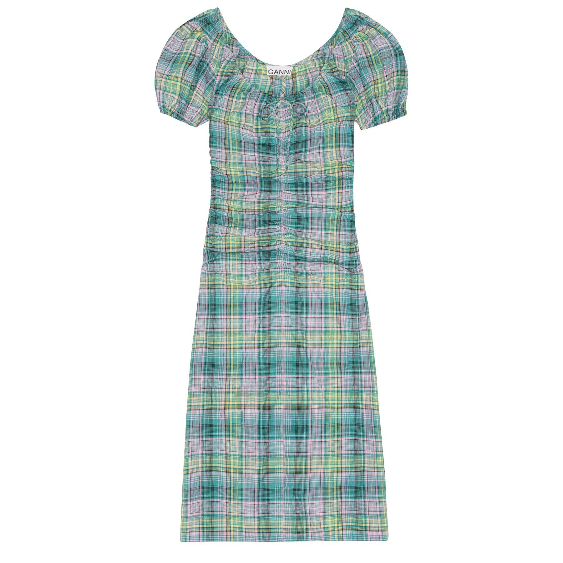 Entdecken Sie das faszinierende Damen Kleid SEERSUCKER CHECK GATHERED von GANNI, das exklusiv für unsere anspruchsvollen Kundinnen und Kunden in einem atemberaubenden Grün/Rosa Karomuster erhältlich ist. Mit seiner schmalen Passform und dem antaillierten Schnitt verleiht Ihnen dieses Kleid eine elegante und feminine Silhouette. Der Rundhalsausschnitt mit Bindebändchen sorgt für eine verspielte Note und setzt gleichzeitig Ihren Hals gekonnt in Szene. Die Puffärmel mit elastischen Bündchen sorgen für einen modernen Look und verleihen dem Kleid eine leichte Raffinesse. Die liebevollen Rüschendetails setzen zusätzliche Akzente und unterstreichen den femininen Charme des Kleides. Das auffällige Karomuster des Kleides SEERSUCKER CHECK GATHERED zieht alle Blicke auf sich und verleiht Ihnen einen zeitgemäßen und stilvollen Look. Sie werden begeistert sein, dass dieses Kleid in Europa hergestellt wurde, was für höchste Qualität und erstklassige Verarbeitung steht. Kombinieren Sie dieses bezaubernde Kleid mit zarten Sandalen und einer passenden Clutch für einen eleganten und raffinierten Auftritt. Für einen lässigeren Look kombinieren Sie es mit weißen Sneakers und einer Jeansjacke. Das SEERSUCKER CHECK GATHERED Kleid von GANNI ist ein absolutes Must-Have für unsere exklusive Kundschaft, die Wert auf Stil, Qualität und Nachhaltigkeit legt. Entscheiden Sie sich jetzt für dieses einzigartige Kleid und lassen Sie sich von seiner Ausstrahlung und seinem Charme verzaubern.