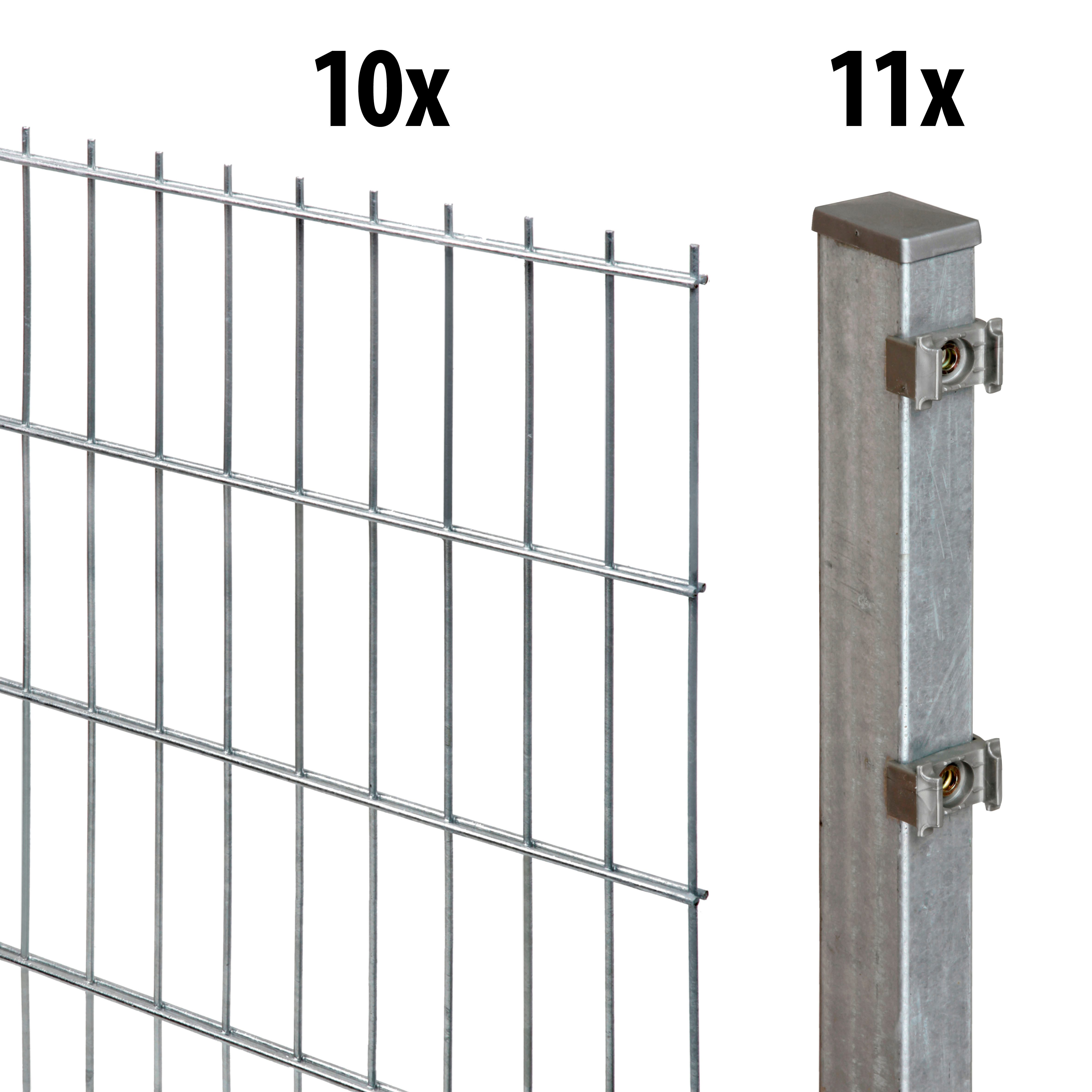 10 Doppelstab-Zaunmatten mit je 201 x 163 cm, 11 Zaunpfosten