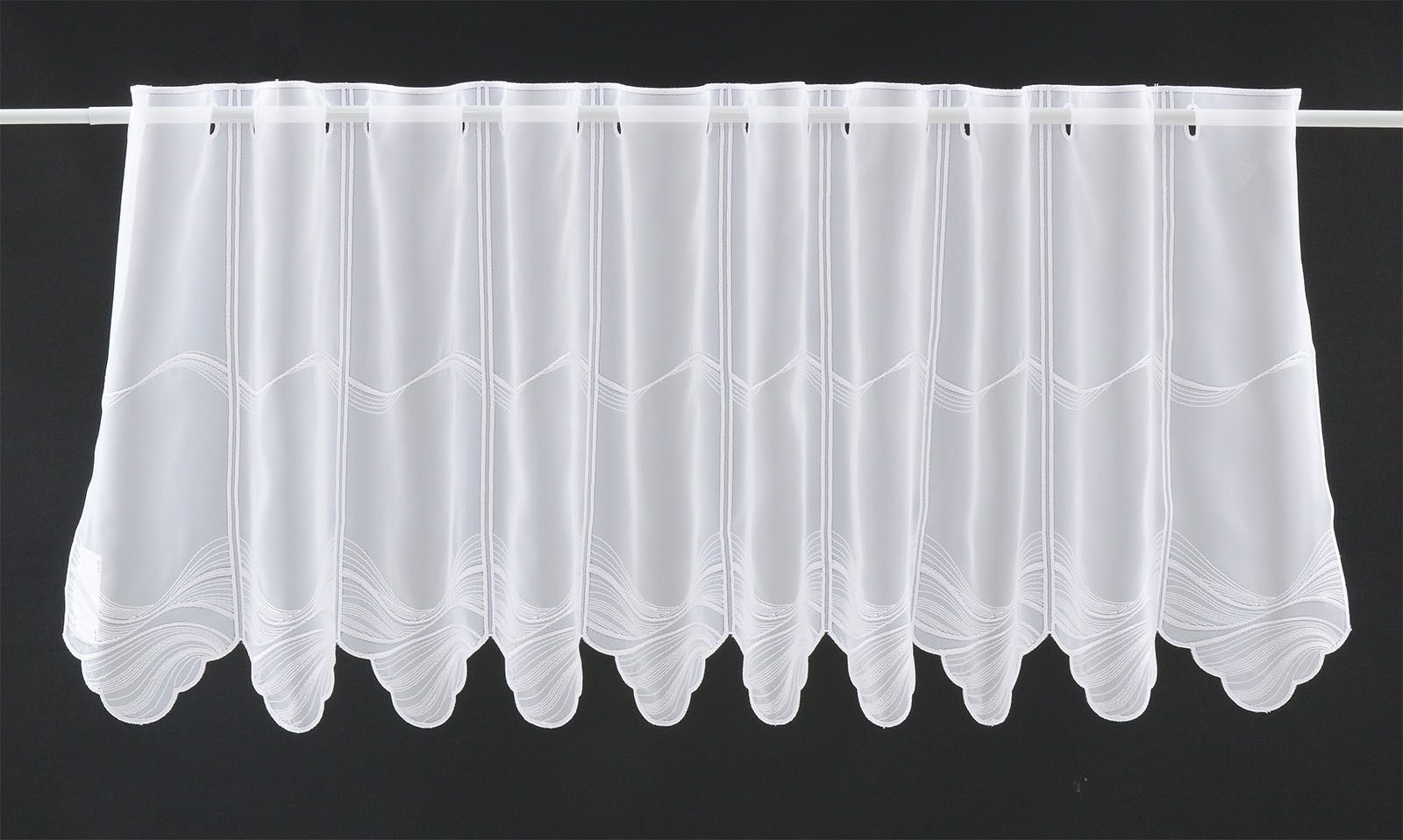 Scheibengardine bestickte Welle 45 cm hoch weiß - Wunschbreite frei wählbar durch gekaufte Menge in 15,5 cm Schritten - Meterware