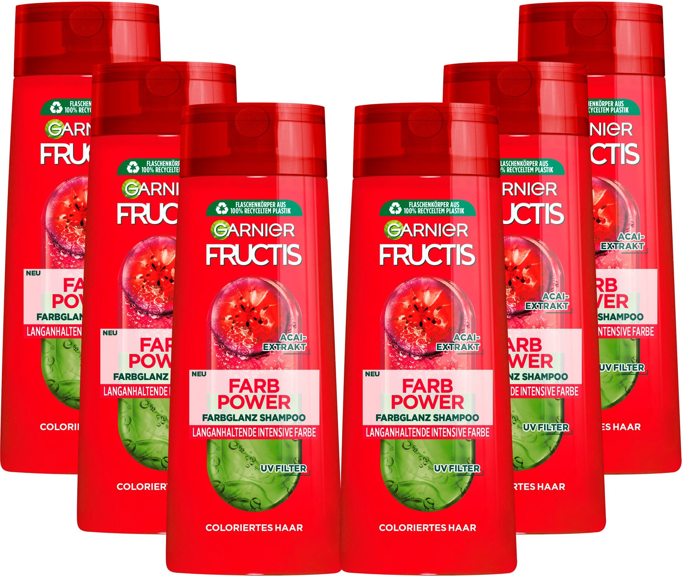 | Anwendung | Eine etwa Haselnussgroße Menge Garnier Fructis Farb Power Shampoo auf das nasse Haar auftragen und sanft auf der gesamten Kopfhaut einmassieren. Anschließend gründlich ausspülen. |