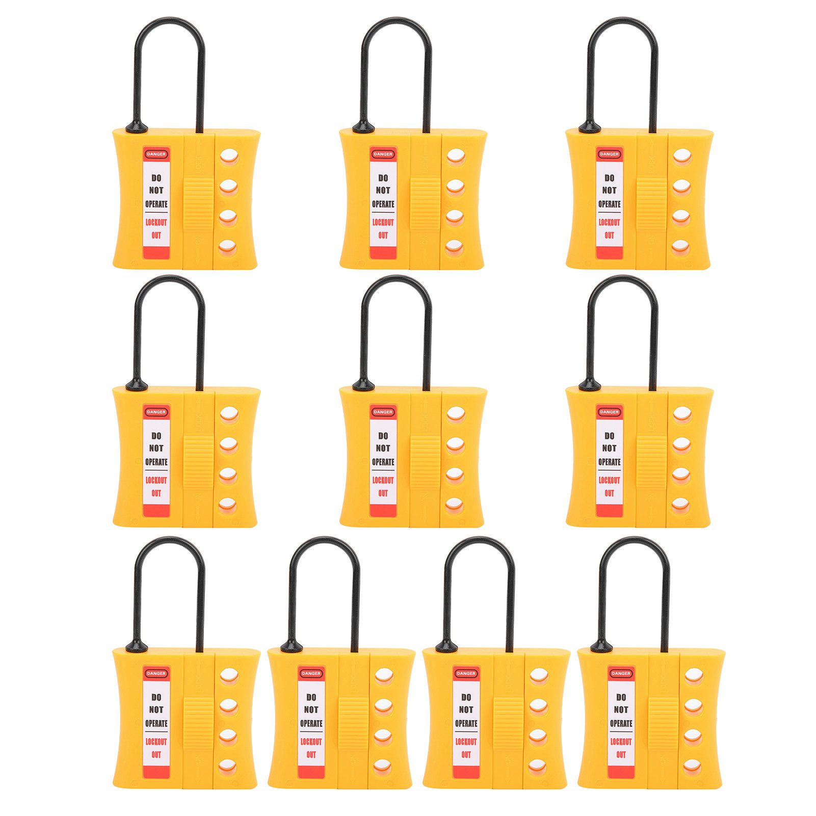 10er-Set Isolierstoff-Sicherheitsschlösser (3mm Stahldorn) mit 4-Punkt-Verriegelung. Hochwertige Nylon-Isolierschlösser für die Abschaltung energieführender Systeme – jedes Schloss mit individueller 6-stelliger Codenummer und UV-resistenter Warnetikette . Die 4‑Loch-Befestigung ermöglicht Mehrfachverriegelung von Hauptschaltern, Kugelhähnen und Sicherungsautomaten. Ideal für Instandhaltung, Produktionsanlagen und Bauarbeiten.