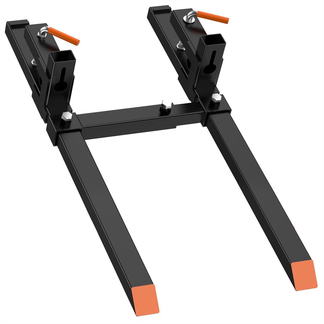 **ROBUSTE & LANGLEBIGE KONSTRUKTION** Gebaut, um intensiver Nutzung standzuhalten, zeichnen sich diese 109 cm (43 Zoll) langen Gabelstaplerzinken durch einen verstärkten, dicken rechteckigen Stahlrohrrahmen aus, der außergewöhnliche Festigkeit und Haltbarkeit bietet. Mit einer Tragfähigkeit von 907 kg (2000 lbs) eignen sie sich perfekt zum Heben von Paletten, Transportieren von Baumstämmen, Bewegen von Heuballen oder zum mühelosen Handhaben anderer schwerer Materialien.