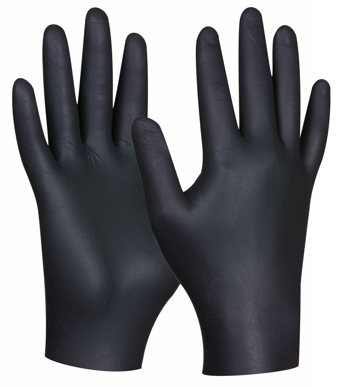 Der Gebol Einweghandschuh schwarz Nitril Ultra Strong besteht aus schwarzem Nitril mit einer Polymerbeschichtung für ein unkompliziertes, leichtes Anziehen und eine perfekte Passform. Der hochwertige Einweghandschuh zeichnet sich vor allem durch die extreme Nässe- und Ölbeständigkeit aus. Die texturierten Fingerspitzen unterstützen Arbeiten mit öligen und feuchten Gegenständen, die eine besondere Griffigkeit verlangen. Der Handschuh bietet eine hohe Elastizität und Reißfestigkeit, ist beidseitig tragbar und silikonfrei hergestellt. In einer Box befinden sich 80 Stück. Der Nitril Einweghandschuh ist für Arbeiten im Gesundheits-, Lebensmittel-, und Hygienegewerbe bestens geeignet.