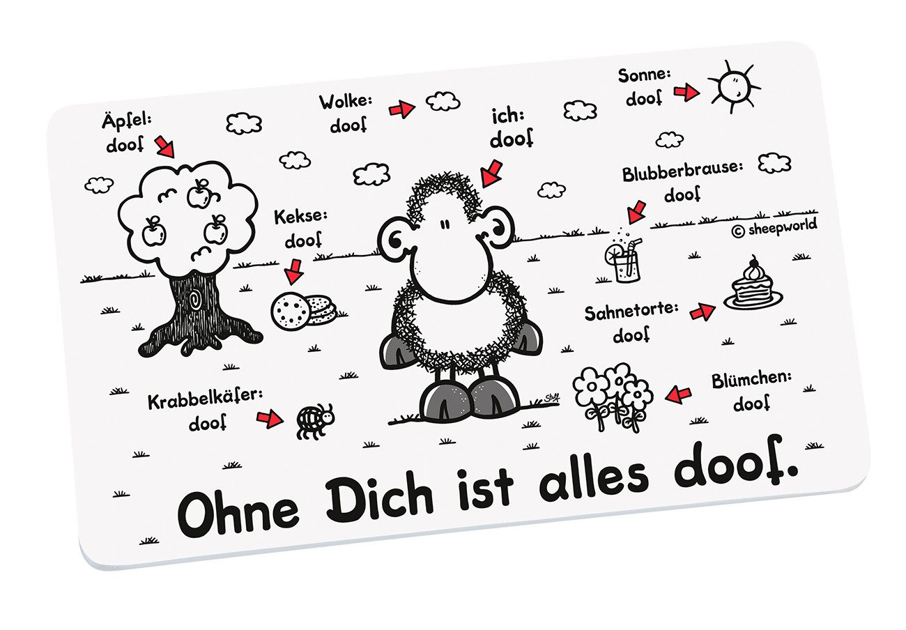 Das Sheepworld Frühstücksbrettchen aus Melamin "Ohne Dich ist alles doof." ist ein Klassiker und als Geschenk für den Freund, die Freundin, zum Geburtstag, als Überraschung, zu Ostern, Weihnachten oder einfach so als persönliche Aufmerksamkeit für Mama, Papa, Oma, Opa, für Dich, für Freunde und Familie und für den Lieblingsmenschen geeignet.