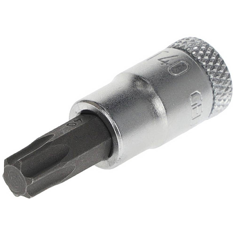 | Eigenschaften | Abtrieb: Innen-Sechsrund (TX) · Antrieb: 1/4" (6.3 mm) · DIN-Norm: DIN 3120 · Gewicht: 25 g · Größe (Schraubendreher): T 40 · Länge (max.): 33.5 mm · Material: Sonderstahl · Material-Eigenschaft: verchromt · Produktabmessung, Länge: 33.5 mm · Schlüsselweite (metrisch): 6.65 mm · Weitere technische Daten: Durchmesser: 14 mm, Spitzenlänge: 14 mm Innenvierkantantrieb nach DIN 3120 - C 6,3, ISO 1174, mit Kugelfangrille Handbetätigt, griffig gerändelt Verchromt Mit eingepresstem Stift aus GEDORE Vanadium-Sonderstahl, brüniert |