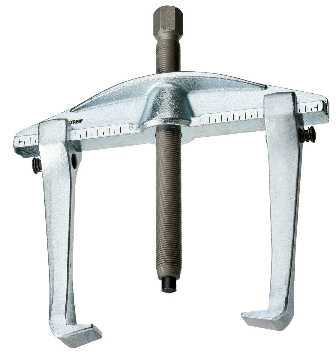 Die ergonomisch gestaltete Traverse verfügt durch die Biegemomentverstärkung am Rücken über noch stärkere und sichere Abzugsmomente, Kräftige, im Gesenk geschmiedete Ausführung, Abzughaken aus einem Stück geschmiedet, Unter Belastung setzen sich die Haken selbsttätig fest, Mit Hakenbremse - Sicherung gegen ungewolltes Verrutschen der Haken. Auf Tastendruck kann der Haken auf der Traverse verschoben werden, Durch Umstecken der Haken als Außen- und Innenabzieher verwendbar, Einstellskala zum gleichmäßigen Justieren der Abzughaken. Erlaubt auch bei höchsten Abzugkräften ein zentrisches und kraftoptimiertes Abziehen, Auswechselbare Spindelspitze (Kugel oder Spitze), Spindel thermochemisch gehärtet, Nachrüstbar mit Hydraulikspindel