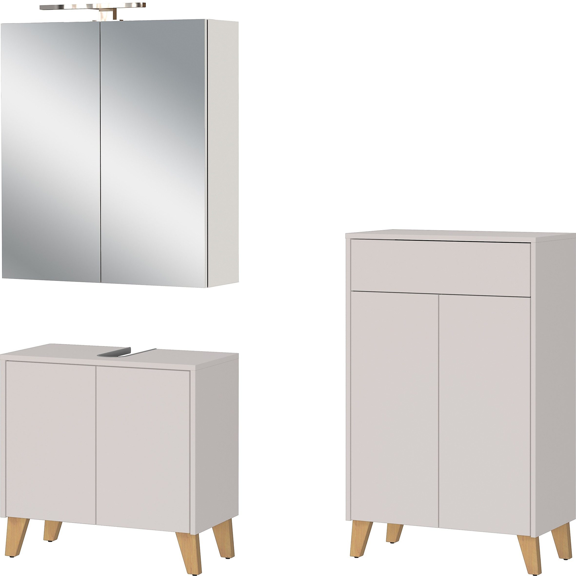 | Set beinhaltet | Waschbecken-Unterschrank, Spiegelschrank, Kommode |