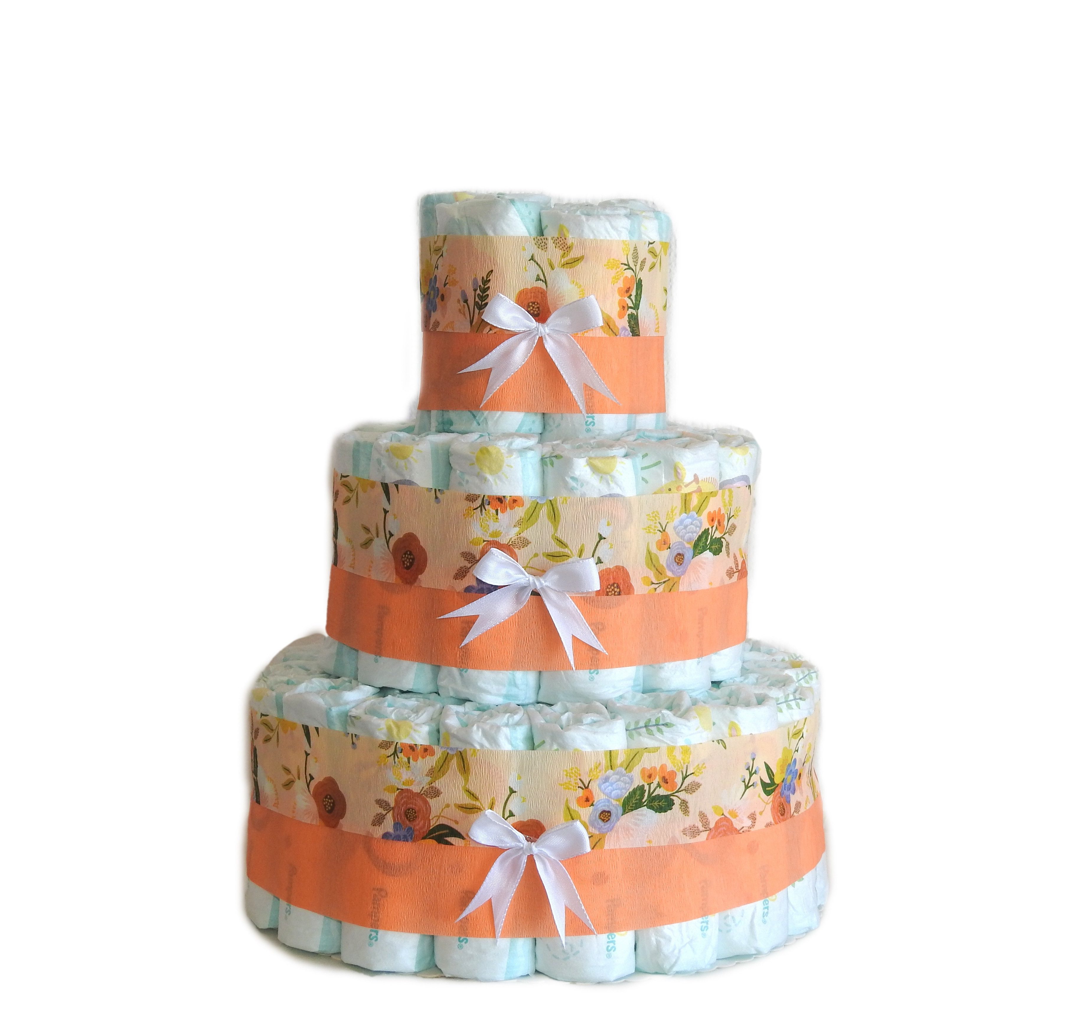 INHALT WINDELTORTE BLUMEN für Jungen oder Mädchen, orange/weiß, Windelgröße 3 (4-9kg) - 48 x Markenwindeln