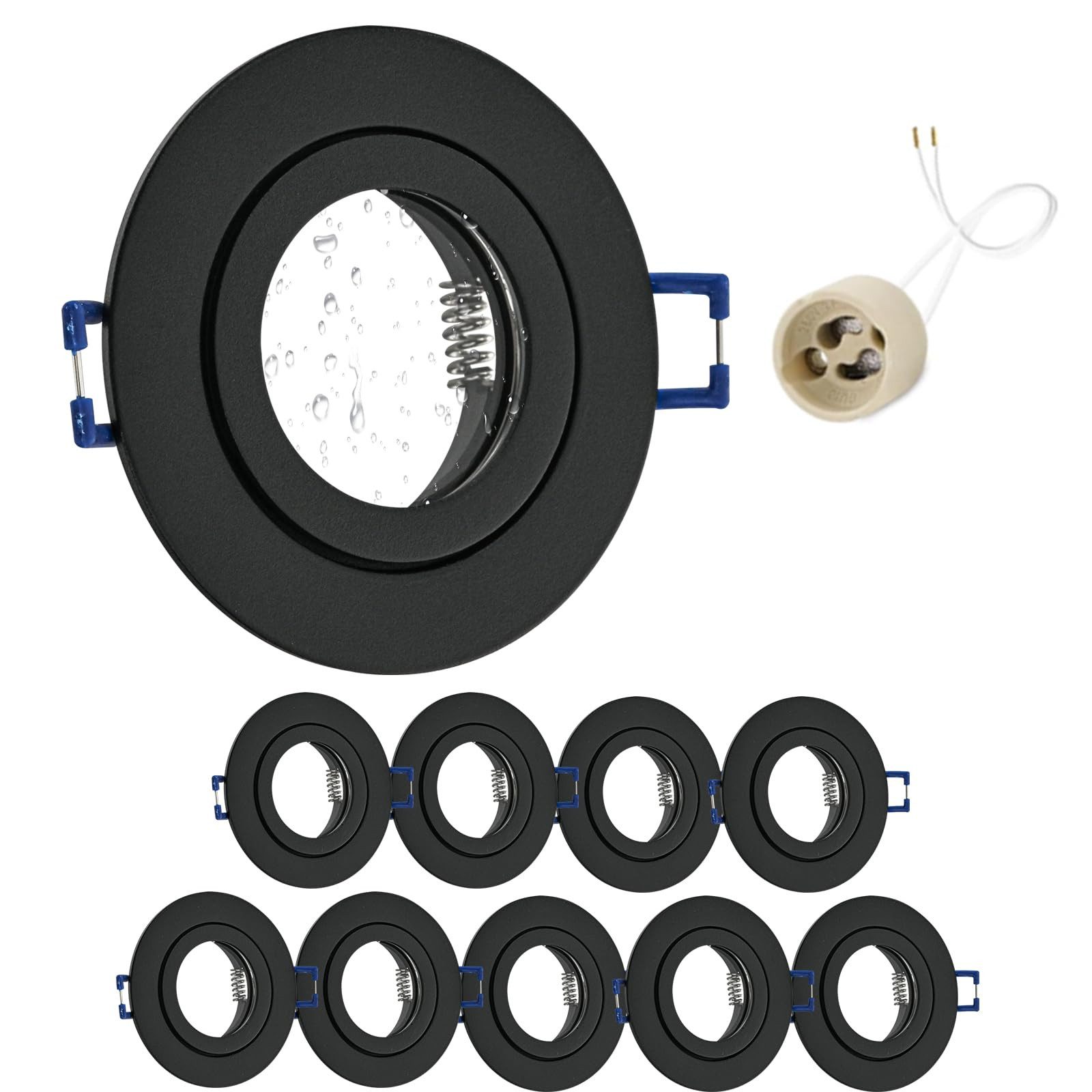 Lieferumfang: 10 Rahmen, 10 GU10-Fassungen, Installationsanleitung