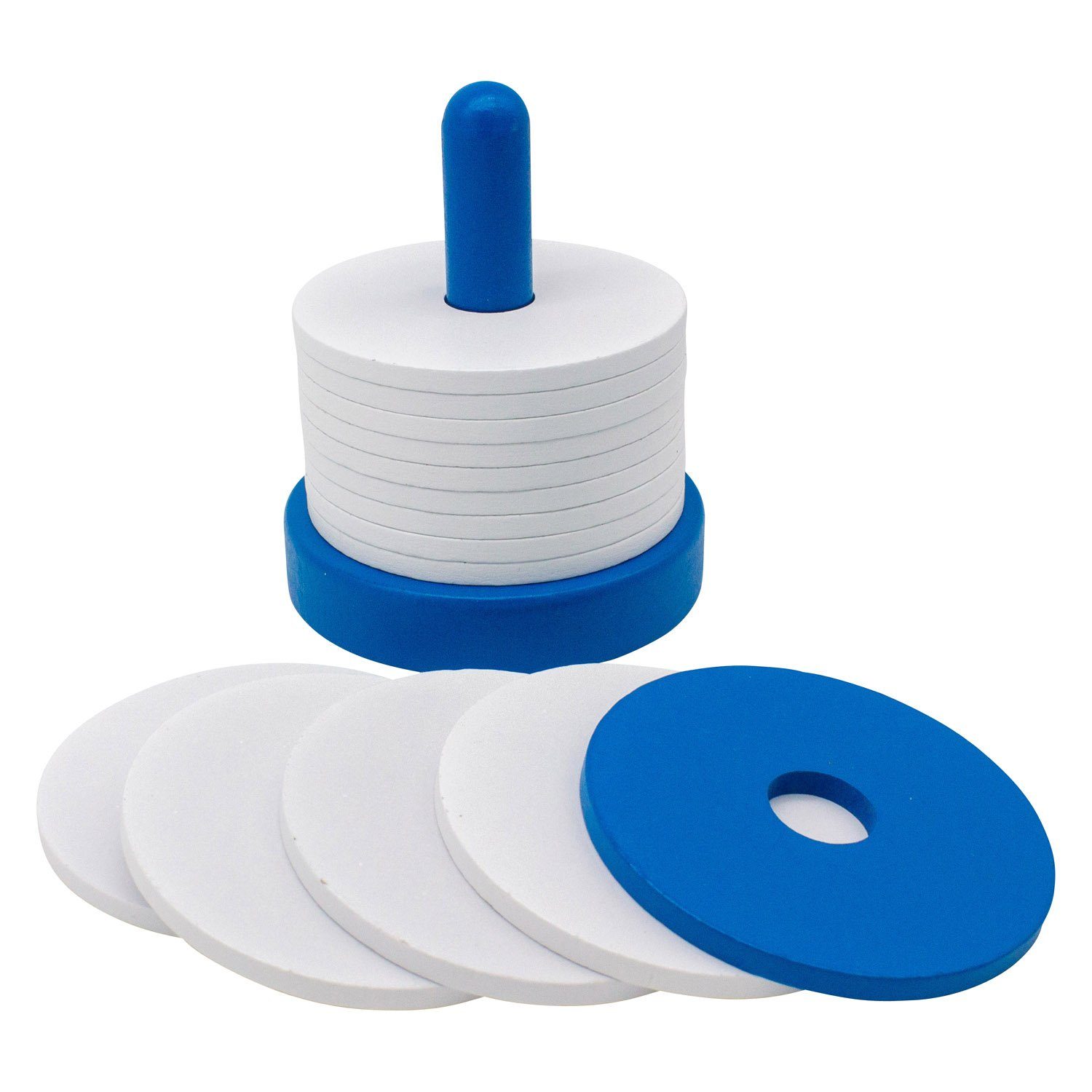 Unser Schockbesteck besteht aus 14 stabilen Holzscheiben. Die Scheiben sind angenehm in der Handhabung. Sie sind farblich klar gegliedert: 13 Scheiben sind weiß, eine ist blau. Diese Farbverteilung dient der Übersicht im Spiel und hilft, den Spielstand einfach und deutlich darzustellen.