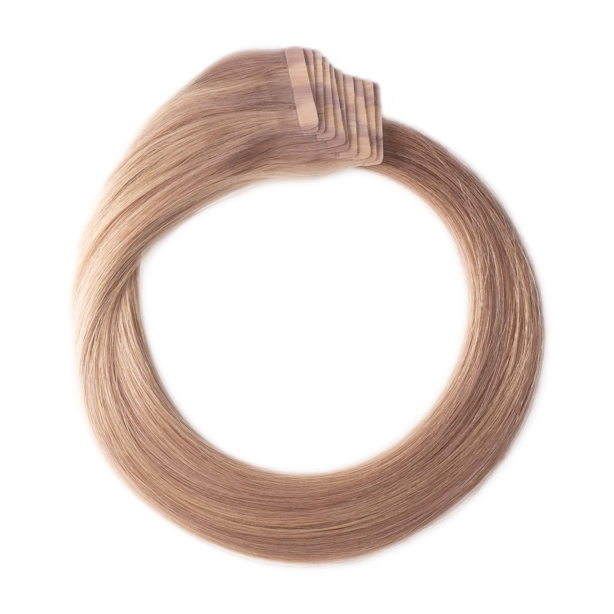 Die Klebestreifen (Tapes) sind in jeweiliger Haarfarbe, sodass ein unsichtbares Ergebnis gewährleistet ist. Schonende Art der Haarverlängerung, da keine Wärme notwendig. Auch bei feinem Eigenhaar geeignet. Die Skin Wefts sind leicht wiederverwendbar, mittels erneuerbarem Tape. 3 Monate Zufriedenheitsgarantie auf die gekauften Extensions, wenn Sie unser Pflegeset mitbestellen. Für nähere Infos bitte hier klicken Tape in Extensions, auch Skin Wefts genannt, sind eine schonende Art der Haarverlängerung, da die Hairextensions ohne Wärme angebracht werden. Dank der sogenannten Sandwich-Methode wird das Eigenhaar zwischen zwei Tape-Strähnen geklebt. Aufgrund der größeren Breite haben die Extensions mehr Halt und sind somit auch bei feinem Eigenhaar gut geeignet. Nach ca. 2 Monaten Tragedauer sind die Hairextensions soweit rausgewachsen, dass man sie hochsetzen muss. Zum Lösen der Haarverlängerung benötigen Sie einen Bondinglöser. Zum Wiederverwenden braucht man neue Klebestreifen (Tapes). Wir bieten Ersatztapes auf der Rolle zum Selbstzuschneiden sowie fertig zugeschnittene Tapes an. Wenn die Haarverlängerung gut gepflegt wird, kann sie mehrmals hochgesetzt und viele Monate getragen werden.
