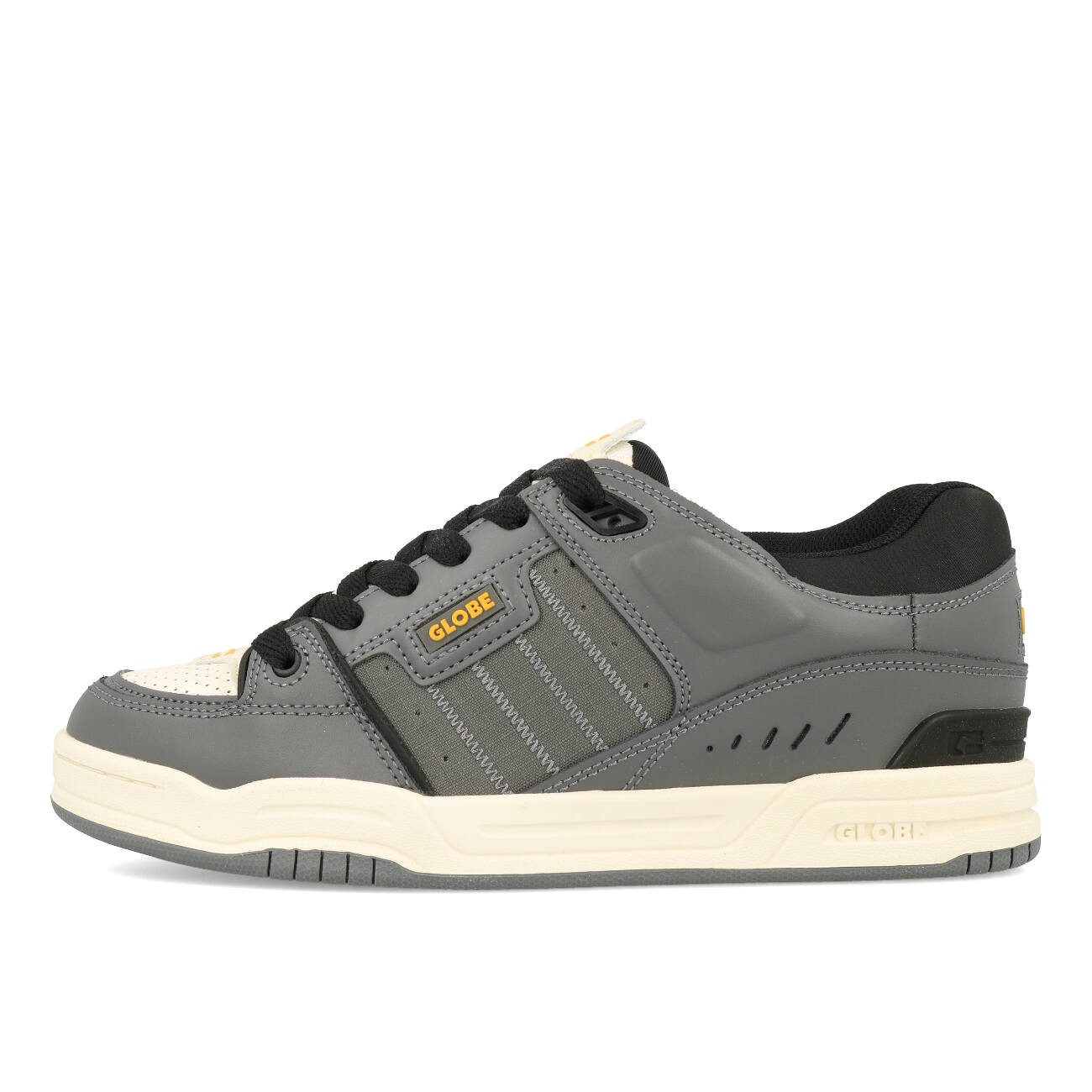 Der Globe Fusion ist ein robuster Skateschuh mit einem Obermaterial aus hochwertigem Kunstleder und Textil. Er besitzt eine dicke Polsterung an der Zunge und am Einstieg und sorgt so für einen hohen Tragekomfort und für einen guten Halt im Schuh. Verstärkungen, doppelte Nähte und die Cupsohle machen diesen Globe Skateschuh besonders robust.