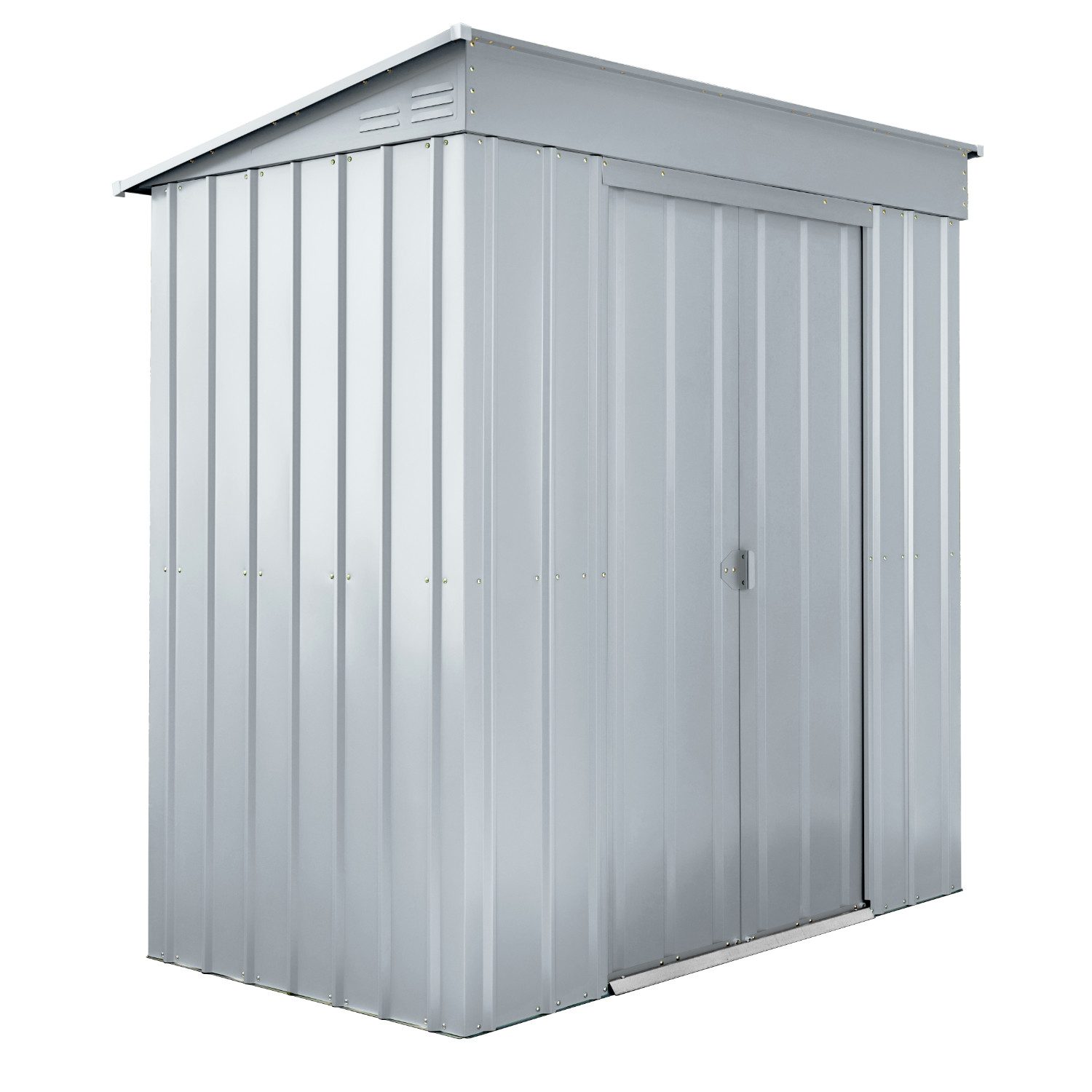 Kleines Gerätehaus von großer Qualität! Das Premium-Metallgerätehaus „SKILLION“ passt mit seiner kleinen Grundfläche perfekt in kleinere Gärten oder auch direkt an Ihre Hauswand. Breite Doppelschiebetüren gewähren Ihnen mühelosen Zugang ins Innere des Hauses. Die Stehhöhe liegt zwischen 1,79 m und 1,98 m. Feuerverzinkter Stahl in feinrippigen Metallpaneelen, verstärkte Ecken im Inneren des Hauses sowie ein verstärkter Mittelrahmen sorgen für überlegene Stabilität im Vergleich zu üblichen Metallgerätehäusern. Auch die mehrstufige Einbrennlackierung und der weitgehende Verzicht auf Kleinteile aus Kunststoff, so z.B. durch gestanzte Lüftungsschlitze, garantieren langlebige Stabilität. Für eine angenehme Belüftung im Sommer sorgen die Lüftungsschlitze im Giebel. Damit Ihre Wertsachen in dem Metall-Gerätehaus sicher verwahrt sind, verfügt das Haus über eine Vorrichtung für ein Vorhängeschloss. Die Premiumgerätehäuser von Globel Industries bestechen durch ihre hochwertige Verarbeitung: Das Stahlblech ist stets komplett feuerverzinkt und weist eine sehr hohe Stabilität auf. Die Ecken sind zum Schutz zusätzlich mit Kunststoffteilen versehen und somit gibt es keine scharfen Kanten an Ihrem Gartenhaus, an denen Sie sich beim Aufbau verletzen könnten. Die Farbe wird nach der Herstellung der Stahlbasis in einem 4-stufigen Verfahren eingebrannt und veredelt. Das macht die Oberfläche robust gegen Rost und Kratzer. Mit 100 kg/m² Schneelast bekommen Sie mit dem Globel Industries Metallgerätehaus ein standfestes, hochwertiges und langlebiges Gartenhaus! Das Premiumgerätehaus wird als Bausatz ohne Boden geliefert. - Premium-Gerätehaus mit Pultdach und Schiebetür - komplett aus feuerverzinktem Stahl - langfristiger Schutz gegen Korrosion und Kratzer dank mehrschichtiger Einbrennlackierung - enorme Stabilität und hohes Eigengewicht - Türgriffe aus pulverbeschichtetem Metall - gestanzte Lüftungsschlitze - ohne zusätzlichen Kunststoff - innenliegende Kastenprofile (statt L-Profile) - keine herausragenden Schraubenspitzen