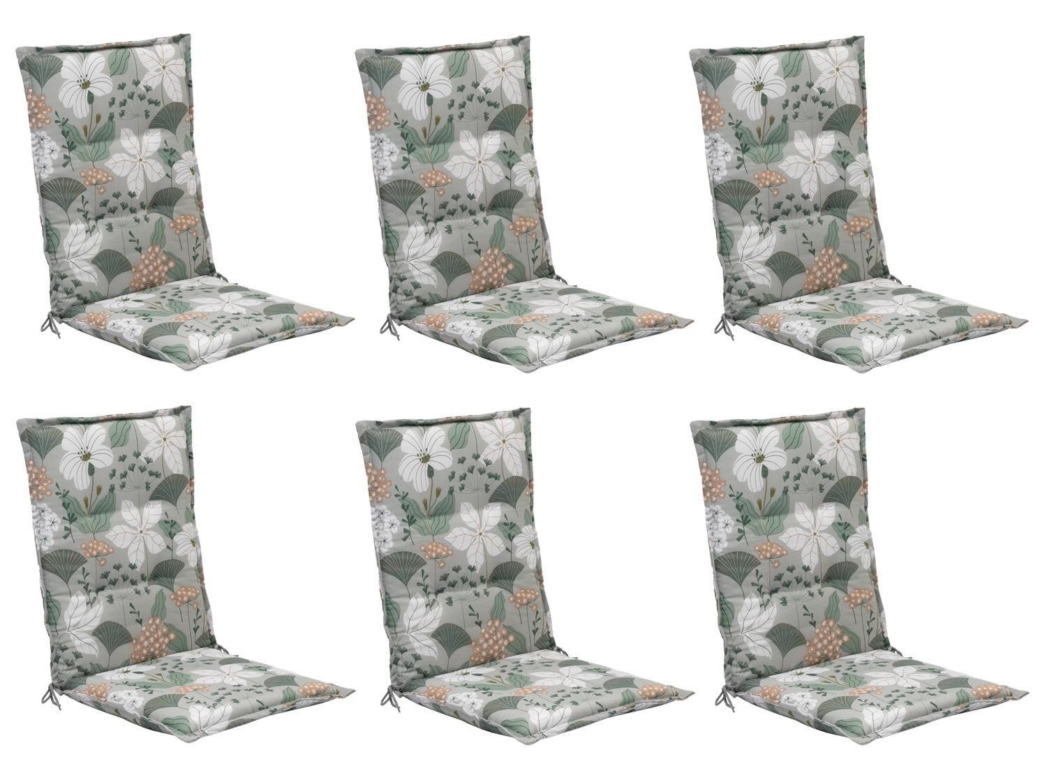 | Lieferumfang | 6 Gartenstuhlauflagen für Mittellehnstühle mit praktischem Gurtband |
