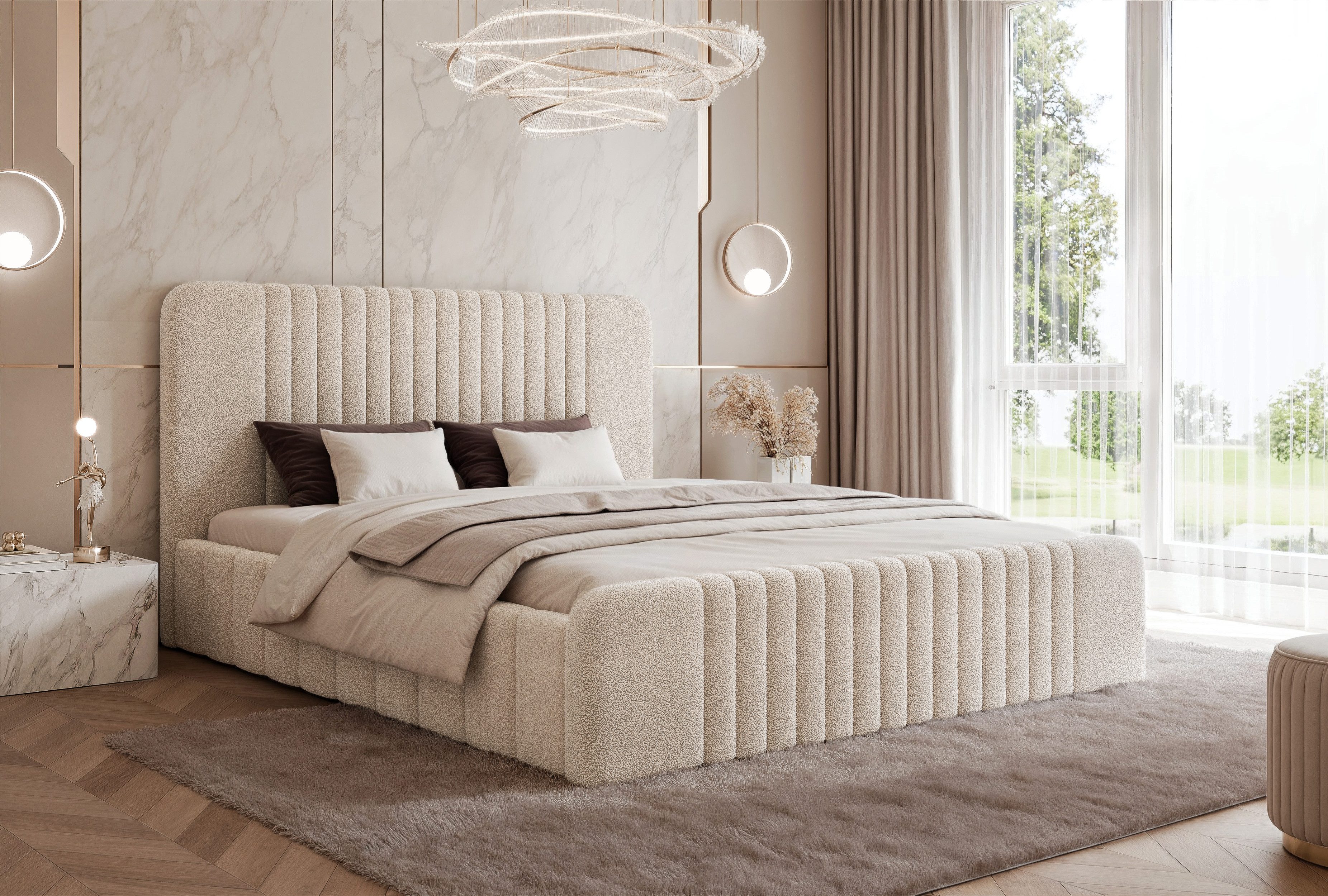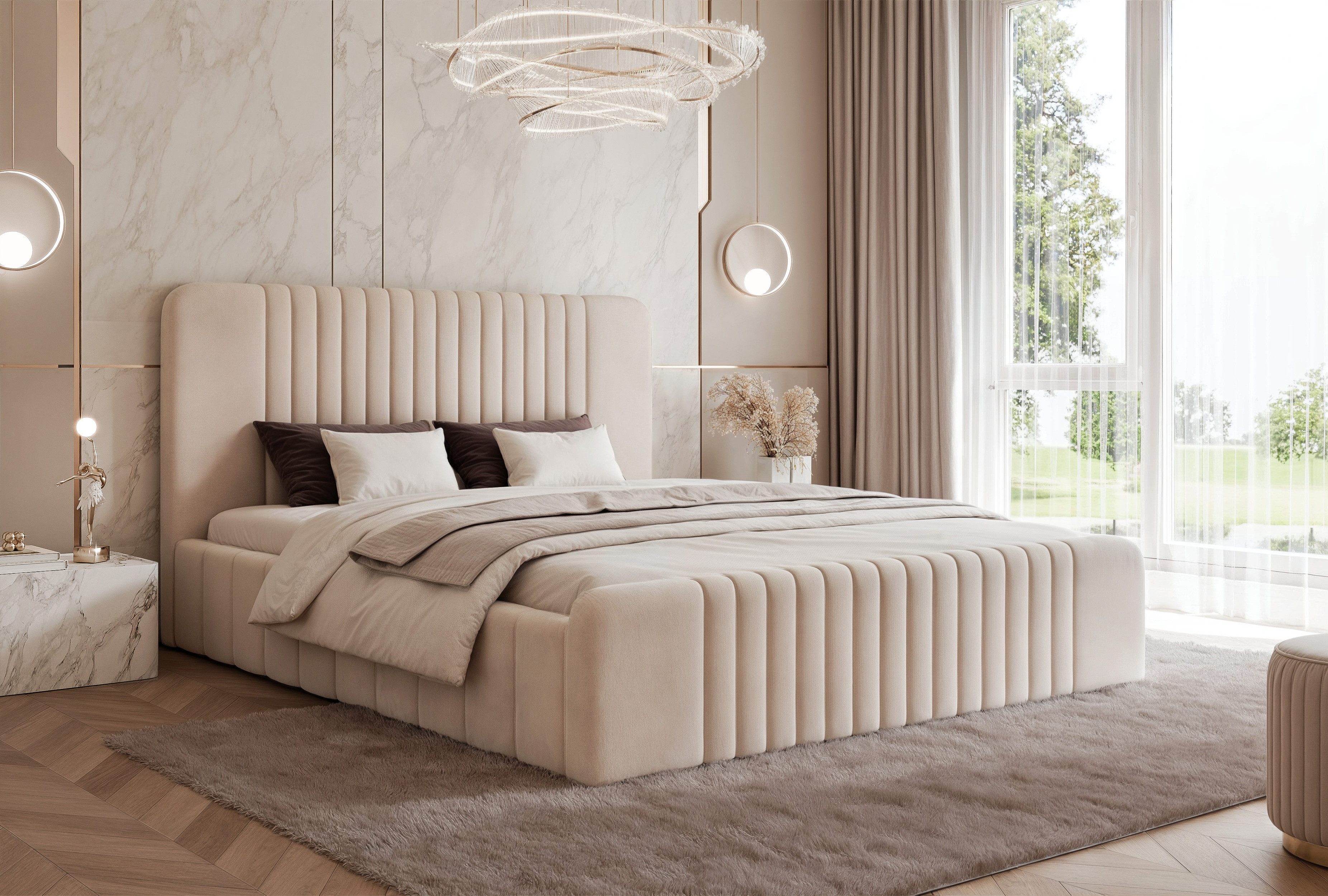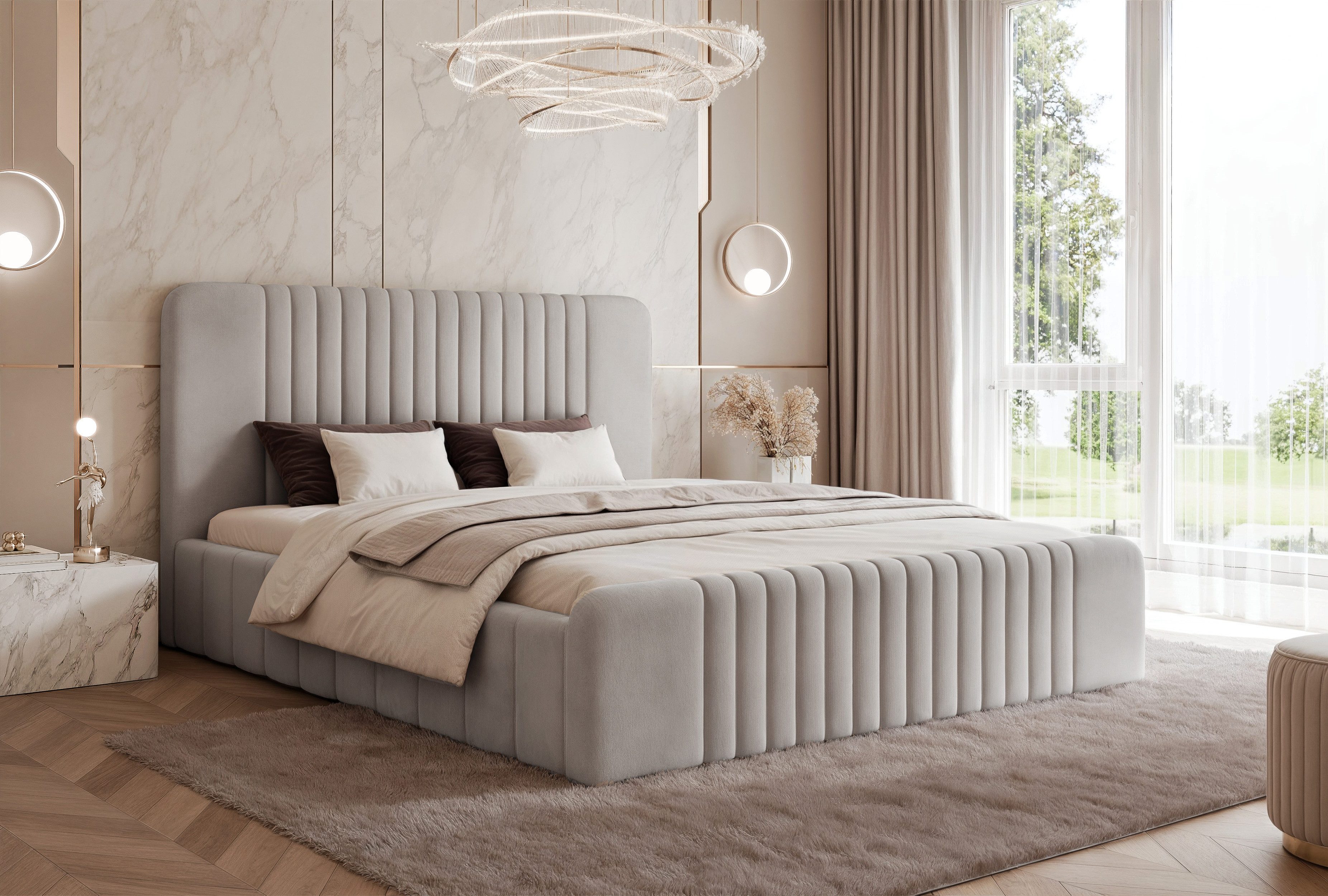 Das Bett überzeugt durch seine klare Formensprache und die feine Vertikalsteppung am Kopfteil. Die abgerundeten Kanten sorgen für ein sanftes, ausgewogenes Erscheinungsbild, das sich mühelos in verschiedenste Einrichtungsstile integrieren lässt – von klassisch bis modern. Die Kombination aus eleganter Optik und funktionalem Aufbau macht das LUCENTE zu einem stilvollen Mittelpunkt Ihres Schlafzimmers.