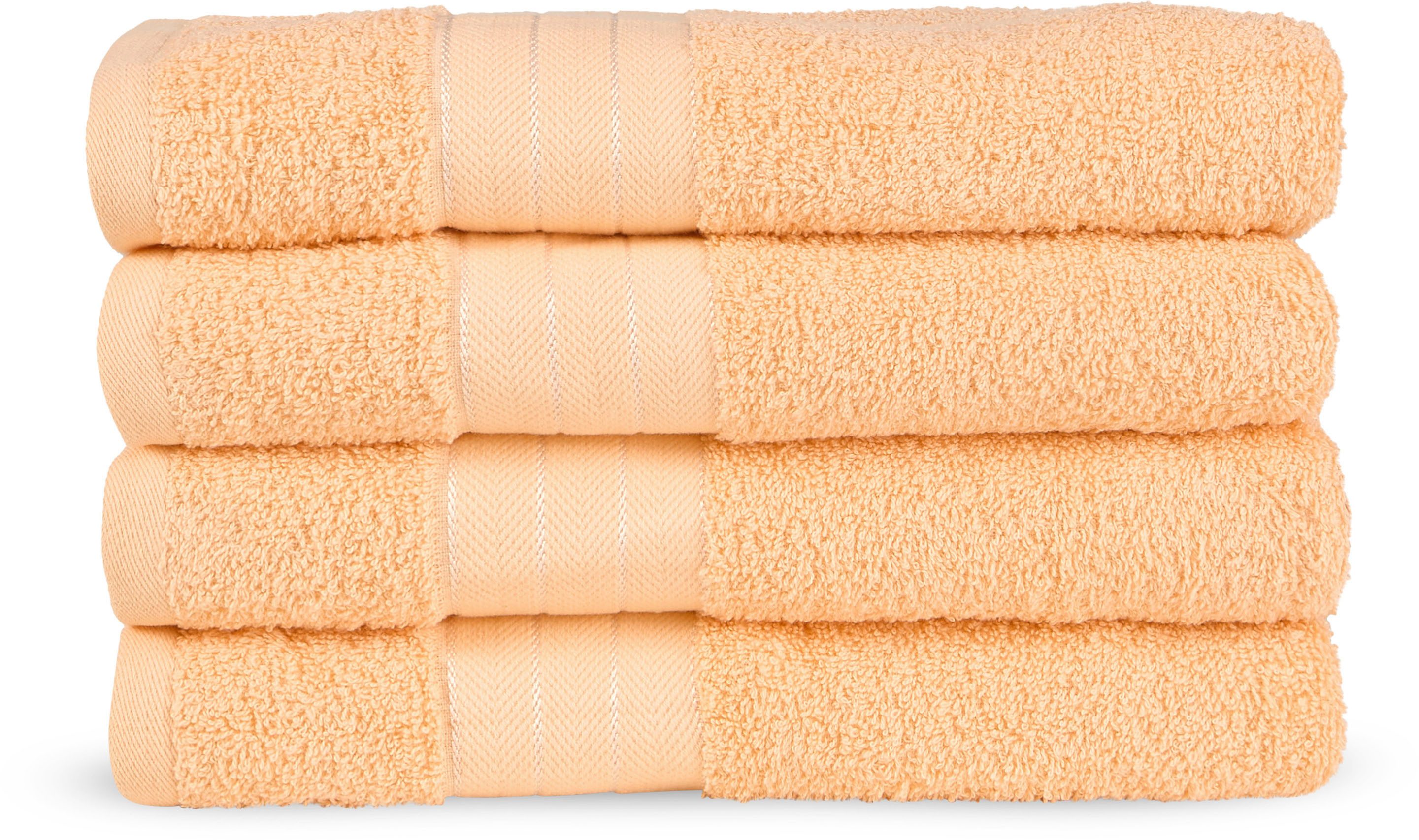 4er Set Handtücher in einer Qualität aus 100% Baumwolle Frottee (500 gsm). Die Handtücher sind sehr weich und haben einen gewebten Rand. Das tolle Material trocknet sehr schnell und ist bis 60°C maschinenwaschbar. Set Info: 4 Handtücher (50x100 cm).