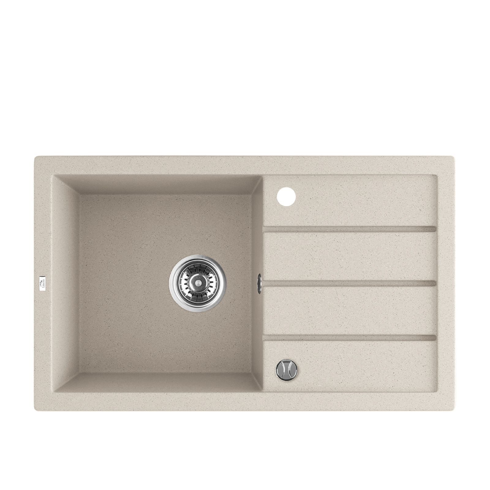 Die Granitspüle TRZYNASTKA verleiht jeder Küche einen robusten, geradlinigen Look. Ihre bis 250 °C hitzebeständige Oberfläche ist pflegeleicht und ideal für den täglichen Gebrauch.