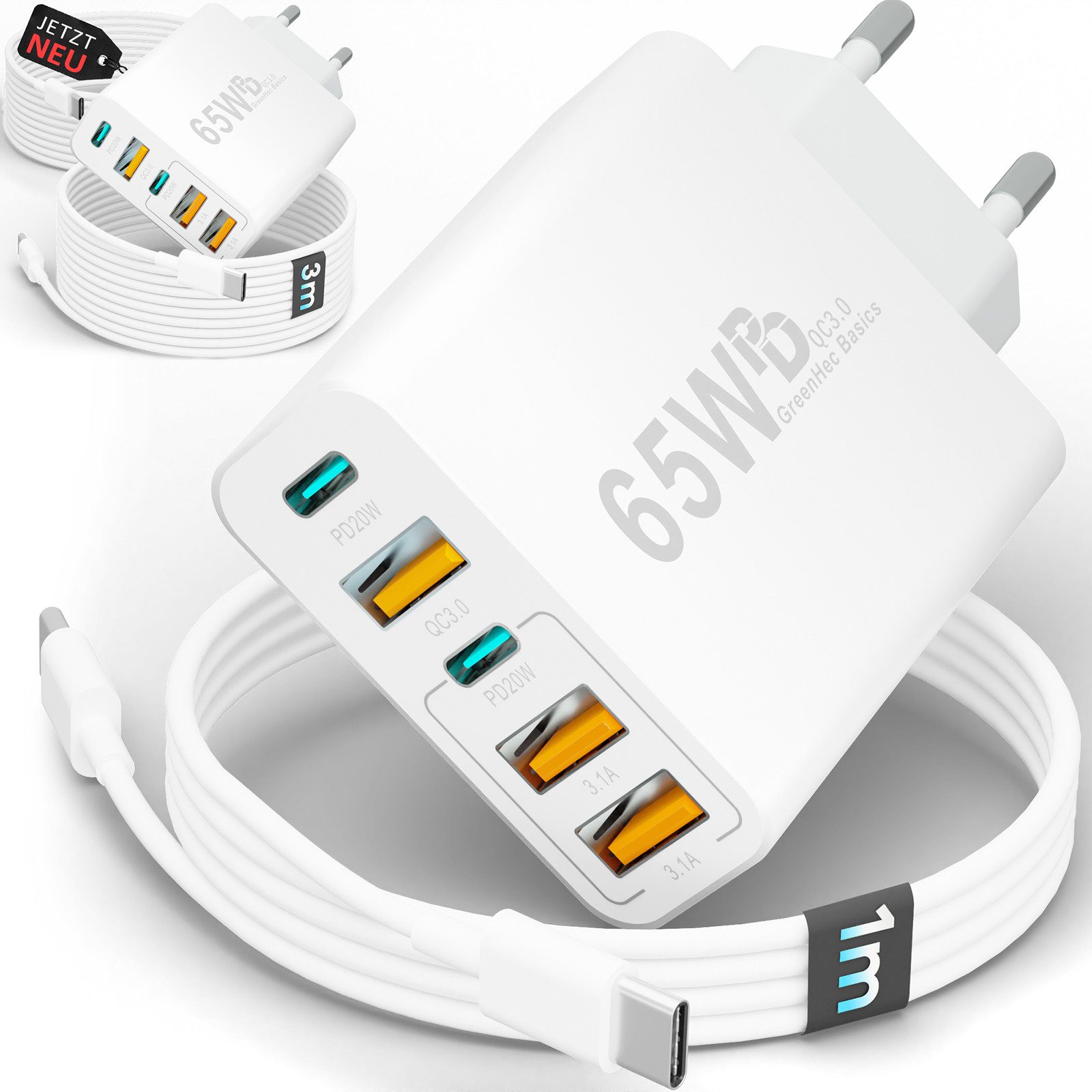 GreenHec 65W Penta Charger + 1x 60W USB-C Kabel in 1m, 2m oder 3m