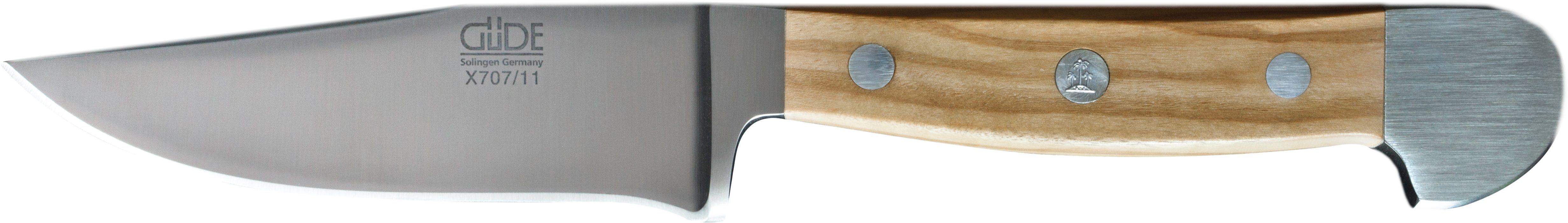 Hochwertige Messer müssen nicht nur scharf sein, sie müssen scharf bleiben, sie sollen gut in der Hand liegen und ausbalanciert sein, damit ermüdungsfreies und jederzeit sicheres Arbeiten garantiert ist. Die optimale Schärfe und Schneidhaltigkeit der Serie Alpha Olive wird sowohl durch die Härte des GÜDE Klingenstahls mit ca. 57-58 HRc (Rockwell) als auch durch den GÜDE Watenwinkel von ca. 33 Grad sichergestellt. Die Griff-Form, der durchgehende Erl und der für GÜDE unverkennbare Doppelkropf machen aus den Messern der Serie Alpha Olive ein Werkzeug, das perfekte Handhabung und Ausbalancierung garantiert.