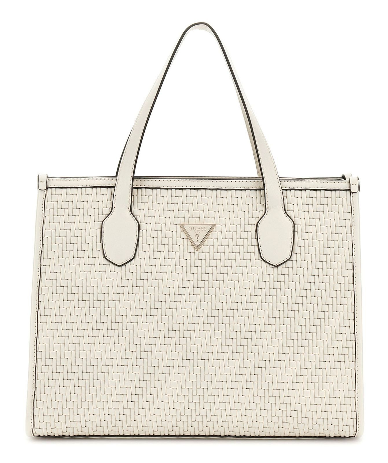 Diese praktische GUESS Handtasche ist ein stilvoller und langlebiger Begleiter für jede Gelegenheit! Das geräumige Hauptfach ist unterteilt und mehrere kleinere Innenfächer bieten zusätzlichen Stauraum für kleinere Gegenstände wie Kosmetika, Notizen oder Kopfhörer. Der abnehmbare und verstellbare Schulterriemen ermöglicht es, die Tasche flexibel zu tragen – ob elegant in der Hand oder bequem über die Schulter. Lassen auch Sie sich von der neuen GUESS Silvana 2 Compartment Tote überzeugen und greifen Sie zu!