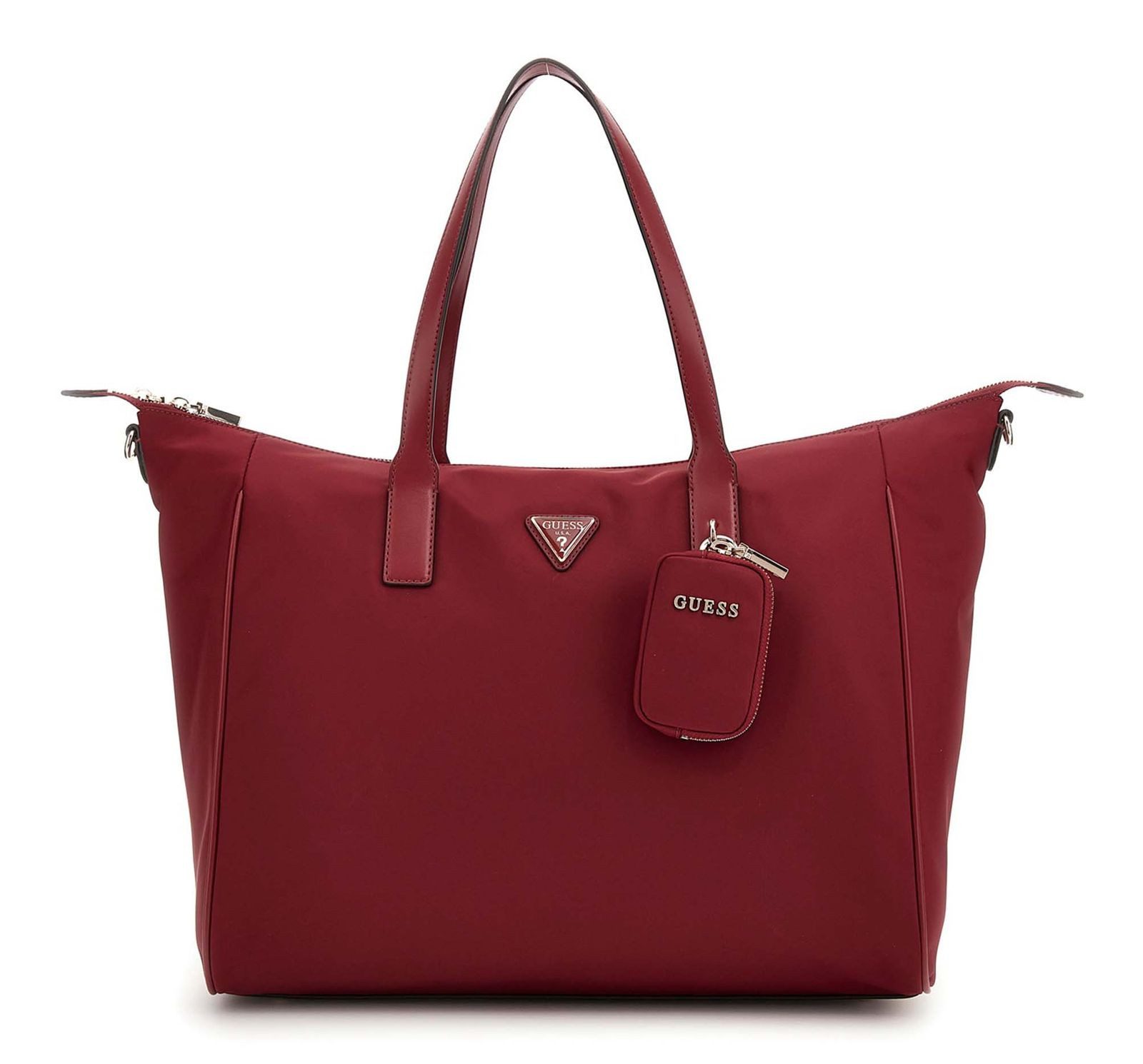 Mit der GUESS Follie Carryon Large Tote hat GUESS ein schickes Accessoire für den Alltag, wie auch für die ein oder andere reise, geschaffen. Im großzügigen Innenraum bringen Sie schnell und einfach alles unter, was Sie für unterwegs benötigen. Die Trolleyhalterung auf der Rückseite lässt sich bei geschlossenem Zipper als Einschubfach nutzen. Im Inneren ist Ihr Laptop in einem eigenen, gepolsterten Fach mit Zippverschluss sicher aufbewahrt. Die smarte Utensilientasche lässt sich vorne an der Reisetasche befestigen und ist ideal für Kleingeld, Schlüssel oder Kleinigkeiten, die schnell erreichbar sein müssen. Lassen Sie die einzigartige Reisetasche von GUESS ein Teil Ihrer Reise werden!