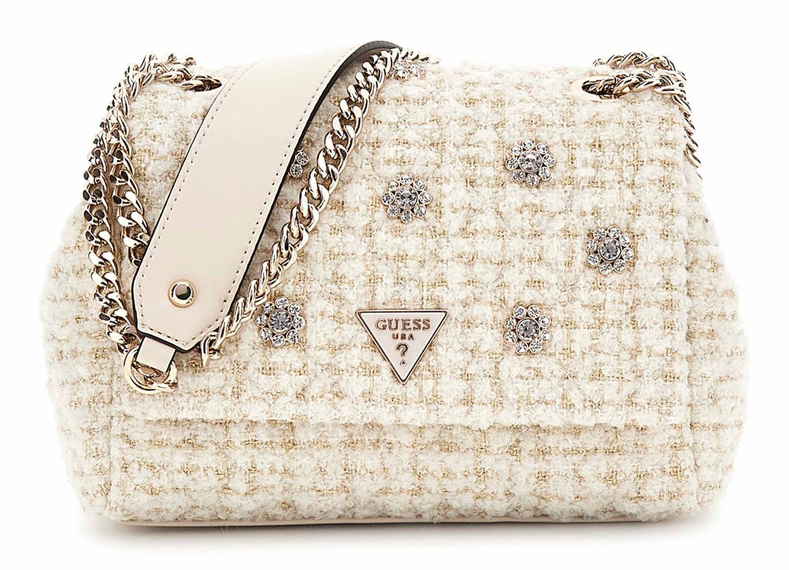 Mit diesem GUESS Artikel können Sie sich auf einen atemberaubenden Abend freuen! Ob als stilvolle Ergänzung zum Alltagsoutfit oder als schickes Accessoire für besondere Anlässe: Diese GUESS Schultertasche in Ivory bringt Eleganz in jeden Look und beweist, dass Funktionalität und Modebewusstsein wunderbar harmonieren können. Trotz ihrer handlichen Größe bietet sie Platz für das Wesentliche. Die GUESS Everlee Convertible Xbody Flap Bag verfügt über eine kompakte Größe, dank derer Sie Ihre Kleinigkeiten problemlos verstauen können. Ihrem Outfit wird mit dieser besonderen Schultertasche einen glamourösen Touch verliehen.