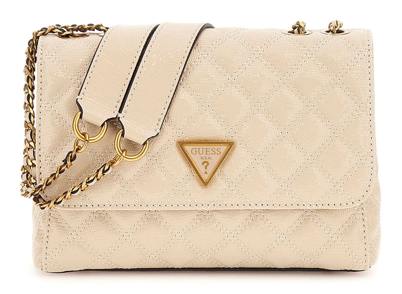 Diese kompakte GUESS Umhängetasche überzeugt auf ganzer Linie! Edel und modisch zeigt diese Tasche, wie man immer stilvoll unterwegs sein kann, denn ihre innovative Optik ist immer passend und einfach kombinierbar. Die GUESS Giully 2 Compartment Convertible Flap hat zudem ein aufgeteiltes Hauptfach, in das Smartphone, Geldbörse und Hausschlüssel kinderleicht und sortiert hineinpassen. Bei diesem Must-have hat GUESS auffallende Materialoptik und Mode optimal kombiniert. Lassen Sie sich diese schicke Schultertasche nicht entgehen!