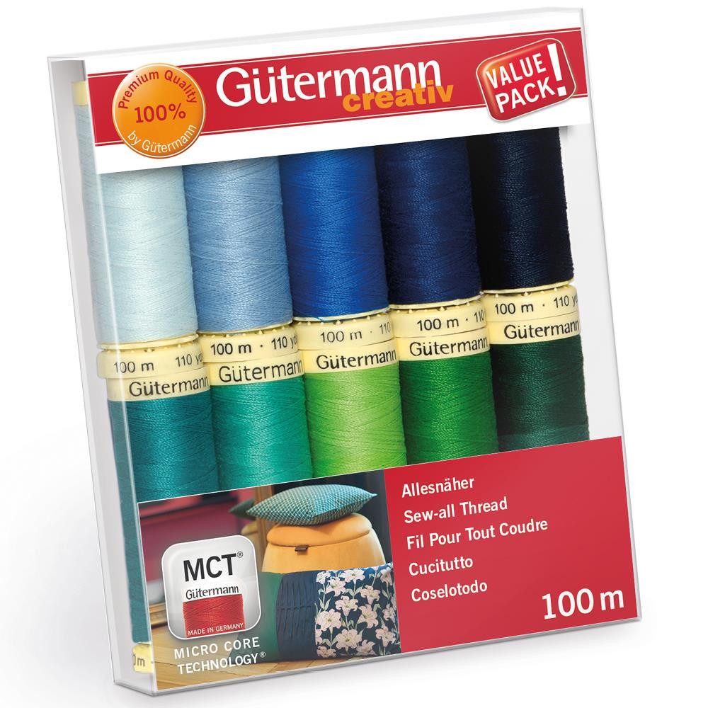 10 Spulen Allesnäher 100 m im Nähfaden-Set bilden eine gute Gestaltungsbasis für alle Kreativen. Die Sets sind in fünf Farbsortierungen erhältlich.