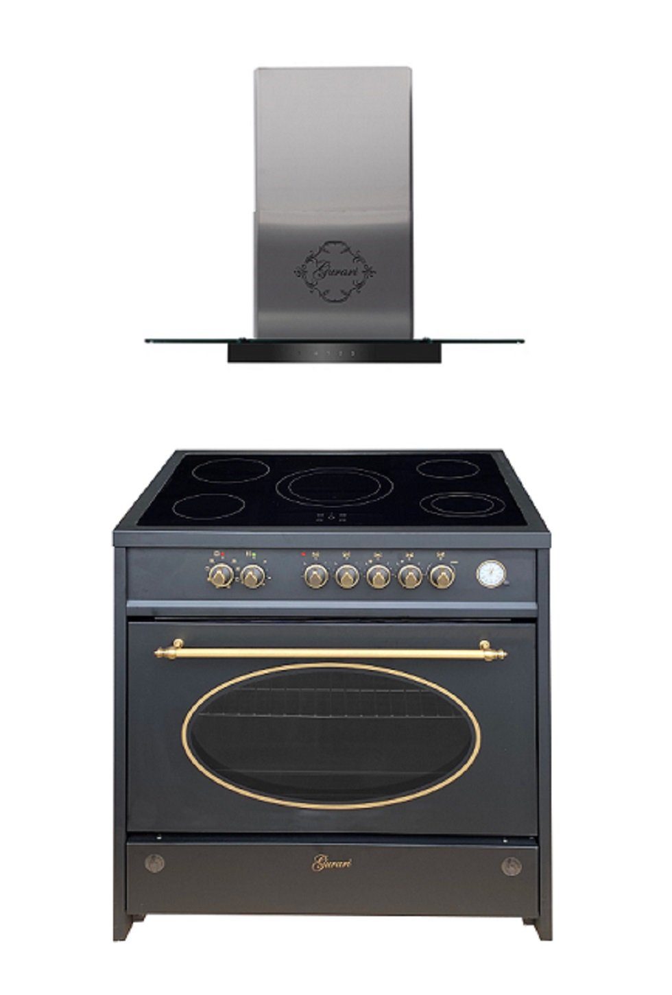 Elektro Standherd 90 cm Retro Line in Schwarz mit Glaskeramik Kochfeld