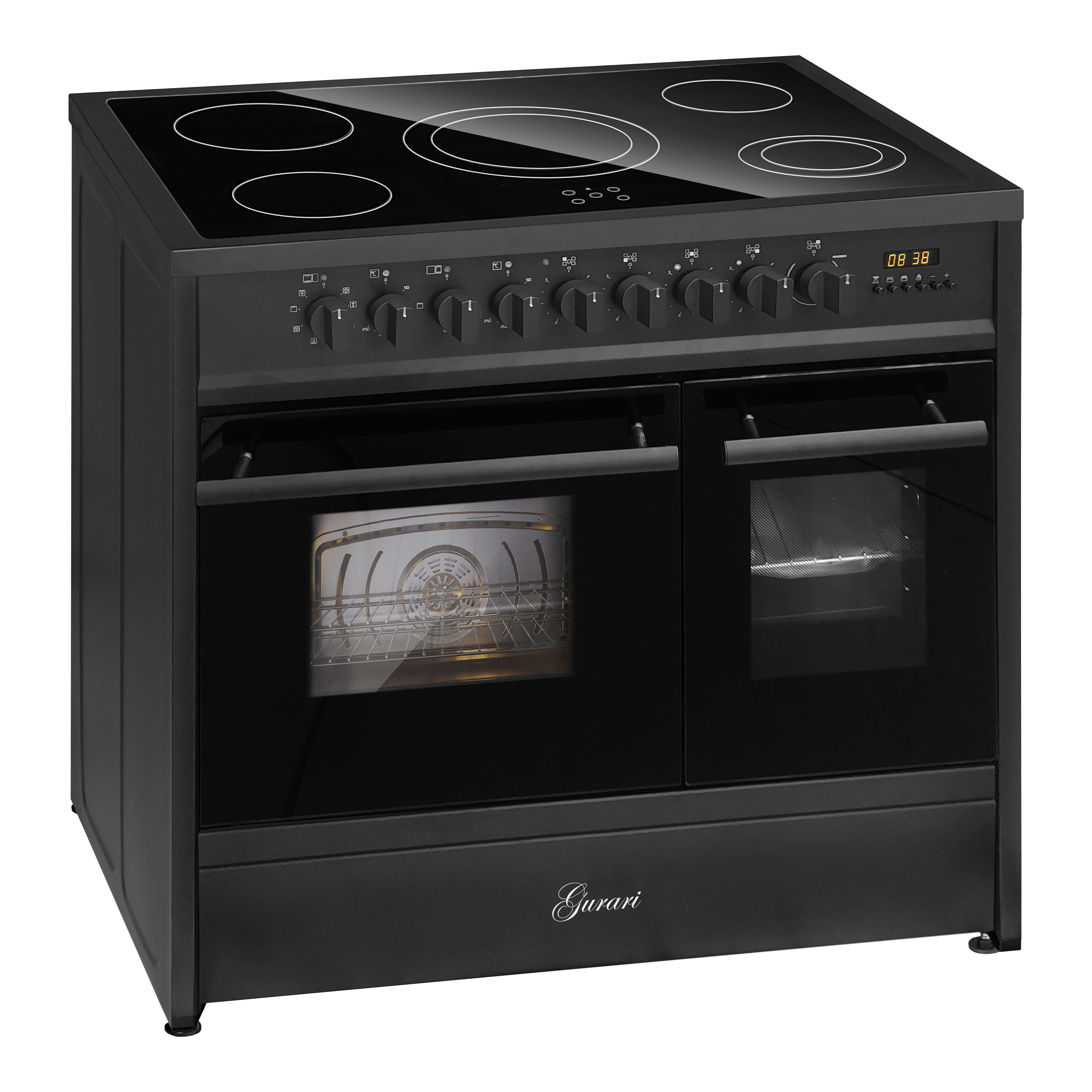 Elektro Standherd 90 cm mit zwei Backöfen in Schwarz