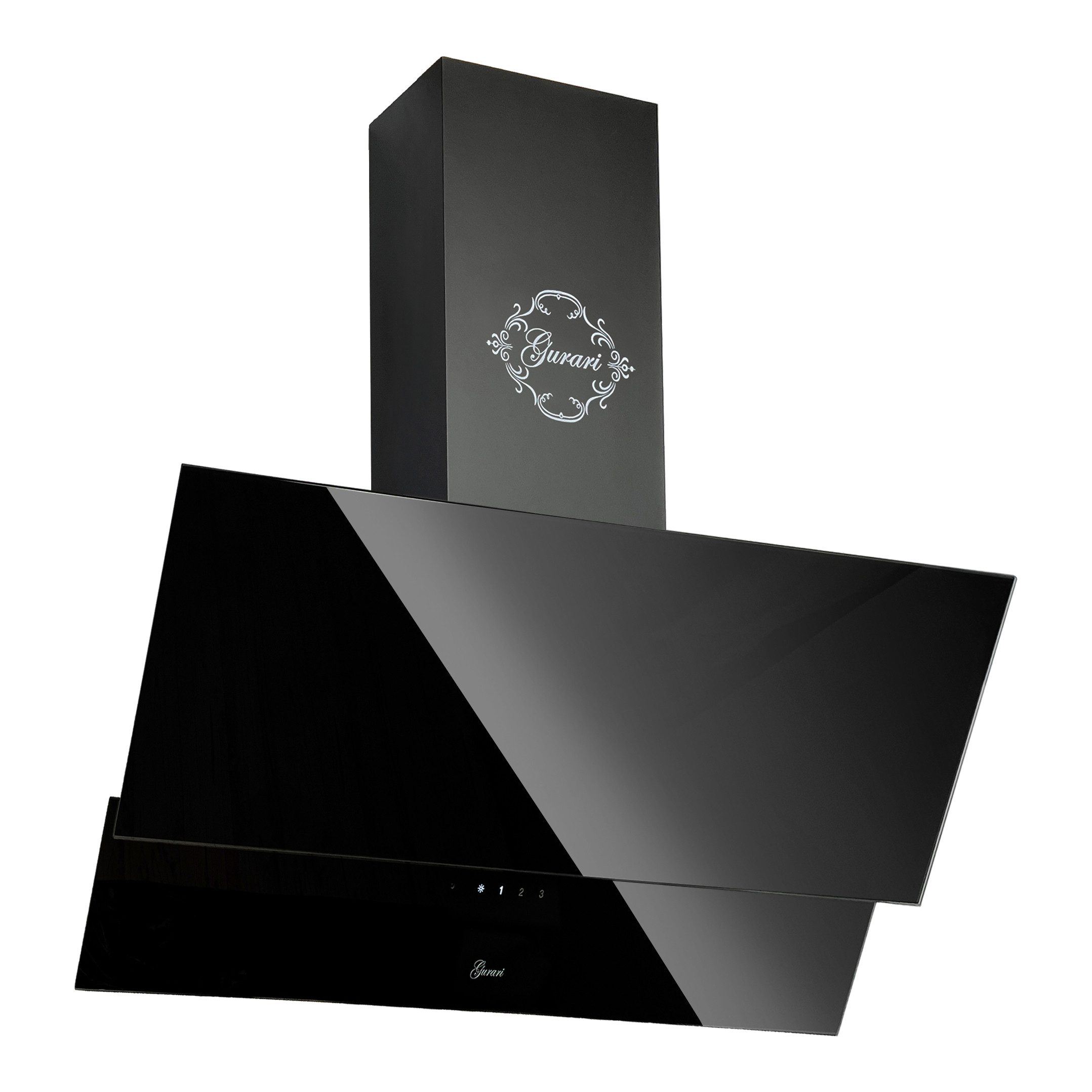 Das Modell GCH D 268 BL Prime ist eine moderne Dunstabzugshaube in kopffreier Bauweise. Korpus und Kamin sind schwarz lackiert. Die Front besteht aus Schwarzglas und ist in zwei Teile unterteilt