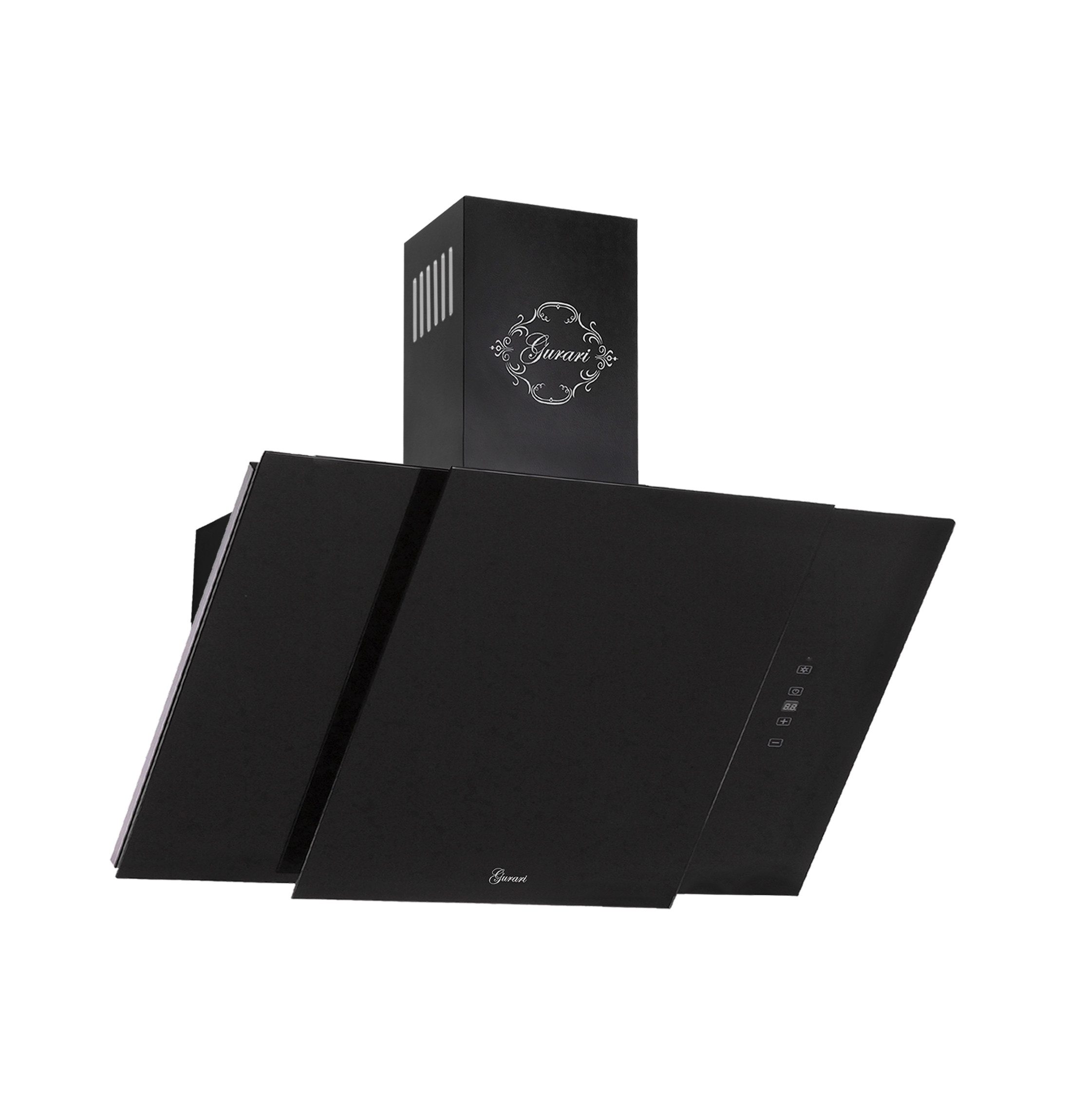 Das Modell GCH S 171 60 BL PRIME N ist eine moderne Dunstabzugshaube in kopffreier Bauweise. Korpus und Kamin sind schwarz lackiert. Die Front besteht aus Schwarzglas und ist in zwei Teile unterteilt