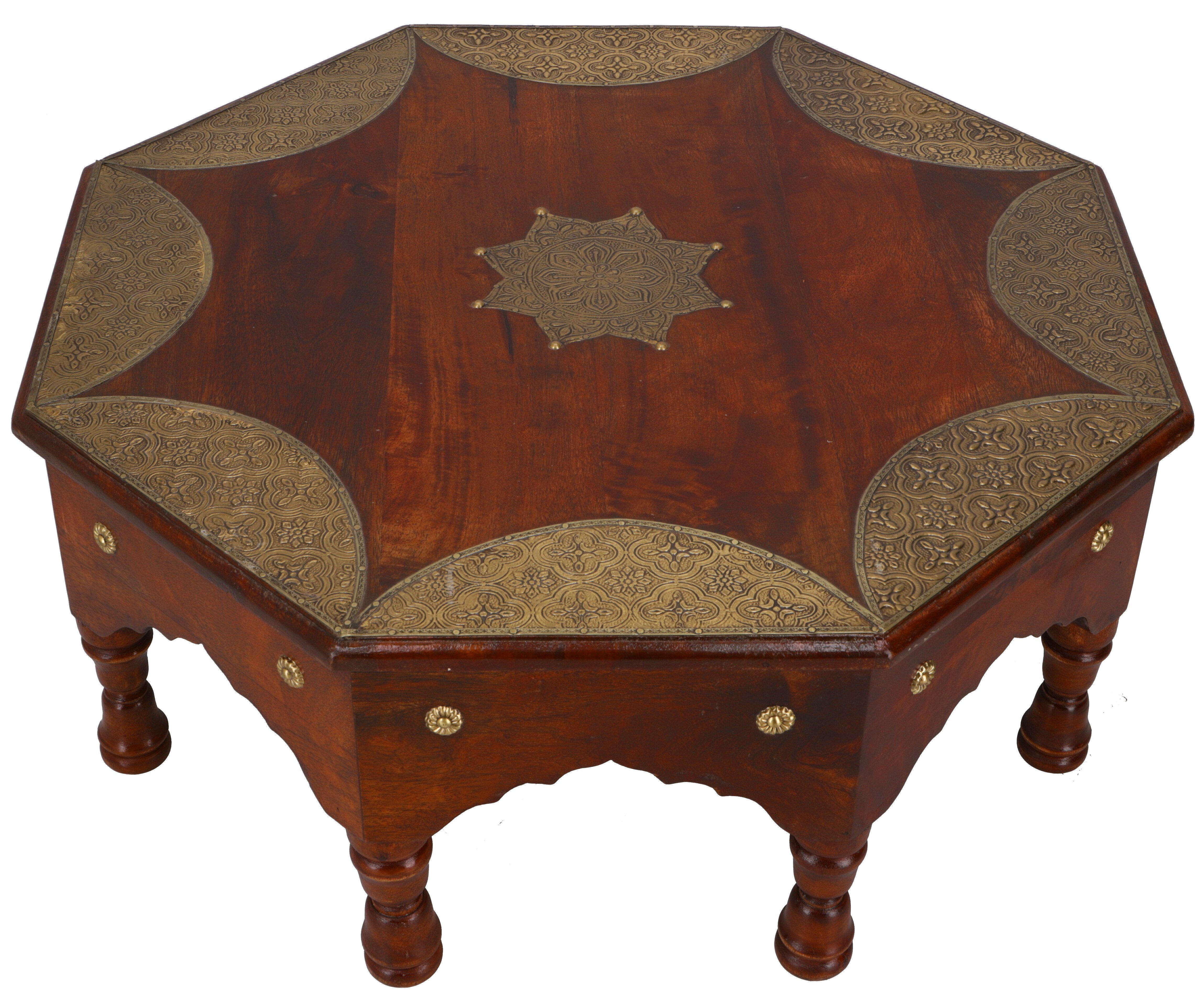 8 eckiger Minitisch, Kaffeetisch, Couchtisch mit Messingdekoration - Modell 2 | 23*52*52 cm