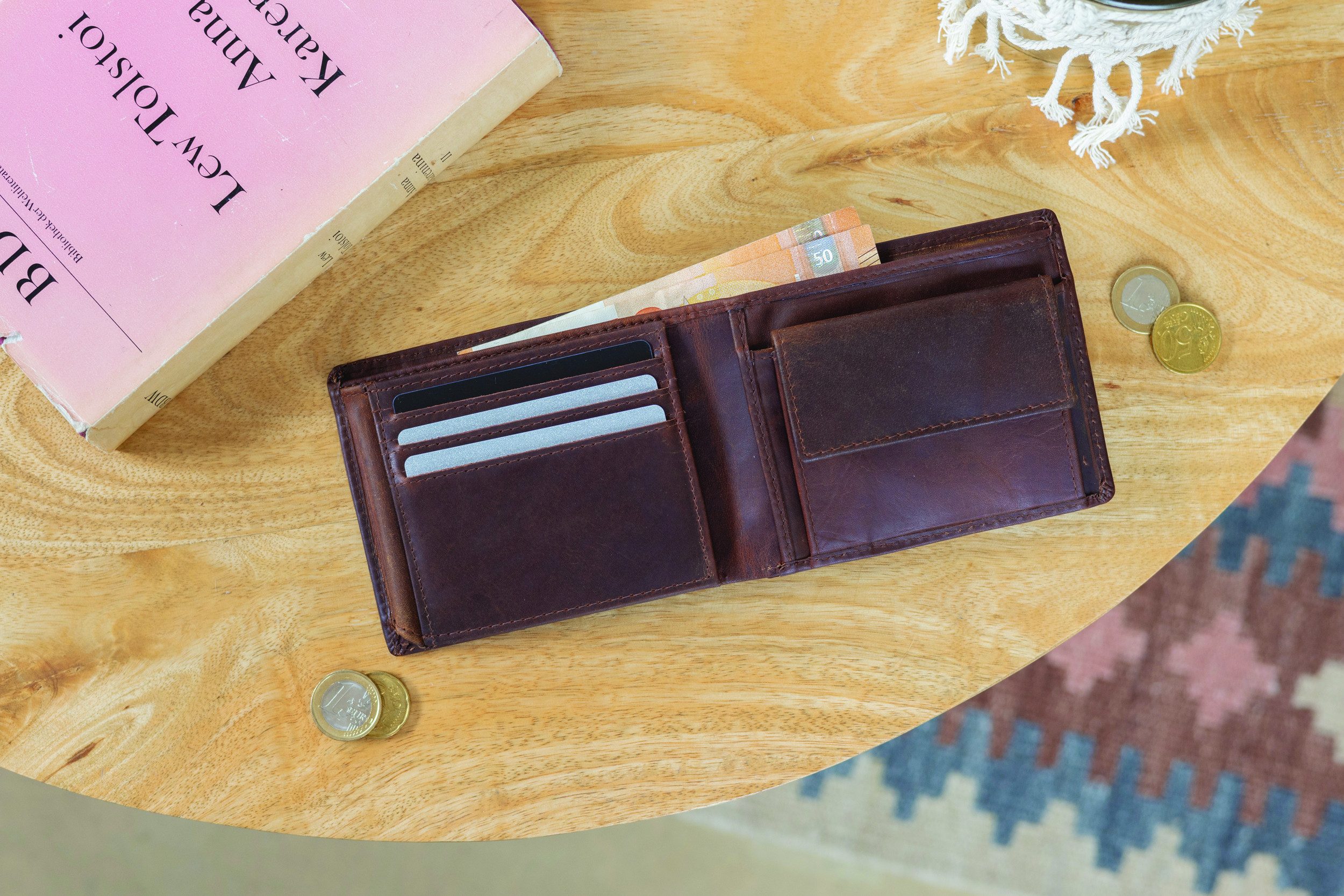 Ohne viel Tamtam, dafür aber mit einer Extraportion Platz: so überzeugt nur unser "Pawel"! Diese klassische Herrenbörse im Querformat überzeugt auf ganzer Linie. Denn "Pawel" besticht nicht nur durch die unbestreitbare Funktionalität, sondern auch durch das zeitlos-klassische Design. Derweil verleiht das widerstandsfähige und hochwertig verarbeitete Leder dieser Börse für die Gesäßtasche eine tolle Formstabilität und Festigkeit. Im Inneren überzeugt das Portemonnaie mit einem sehr gut strukturierten Ordnungssystem aus zwei Geldscheinfächern, einem separaten Münzfach, das über einen Druckknopf geöffnet werden kann, und insgesamt 11 Steck- und Einschubfächern für mindestens ebenso viele Karten. Das ins Design integrierte Flipfach erweitert die Börse noch zusätzlich um ein großes Sichtfenster, in dem problemlos Ausweis, Führerschein oder auch Fotos von den Liebsten untergebracht werden können. Als weiteres "Nice-to-have" erweist sich derweil die Größe von "Pawel", denn das Format eignet sich hervorragend, um beispielsweise Fahrzeugpapiere unterzubringen, ohne sie zu falten und dadurch zu zerknicken. Die praktische und unkomplizierte Funktionalität ebenso wie die optimale Größe werden "Pawel" schnell zu Deinem neuen Lieblingsportemonnaie machen, das Du nie wieder missen wollen wirst.