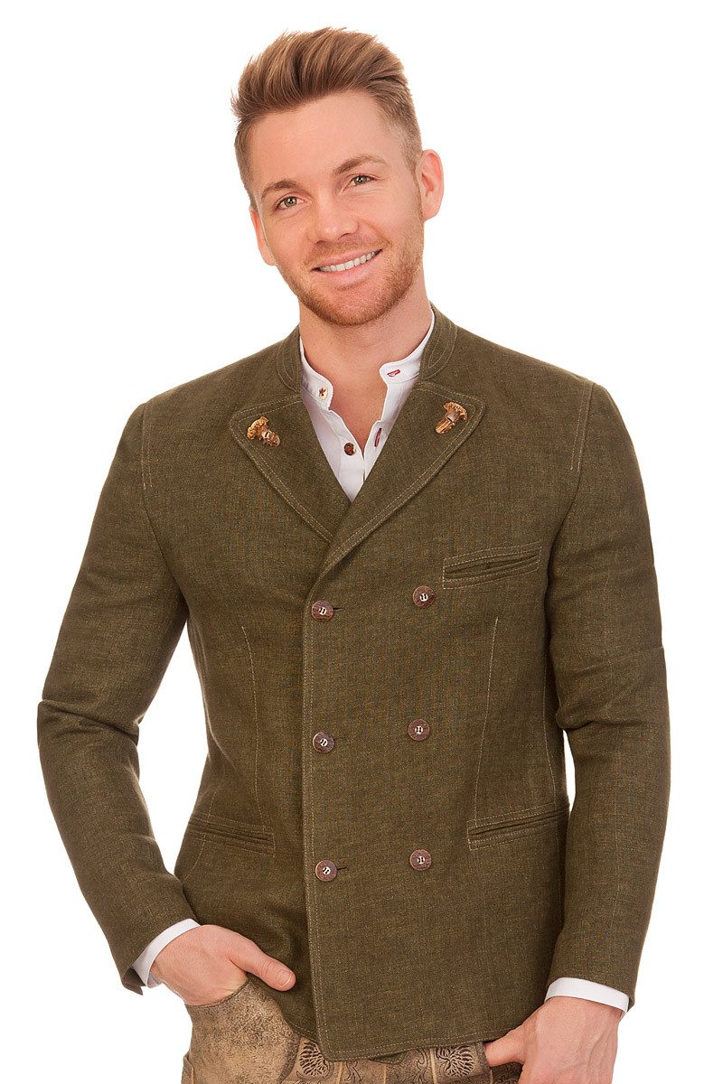 Der exquisiter Herrenjanker Königsbrunn aus reinem, feinsten Leinen überzeugt als Trachtenstück im neuem, elegantem Look. Er besitzt einen traditionellen Stehkragen mit Ziernähten und ein fesches Revers, das mit Hirschhorn-Teilen raffiniert verziert ist. Auf der linken Brusthöhe befindet sich eine schicke Paspeltasche. Die Eingrifftaschen auf beiden Seiten vorn sind ebenfalls schön abgepaspelt. An der doppelten Knopfleiste sitzen rustikale Hirschhorn-Knöpfen. Ebenso sind die Ärmelenden mit Knöpfen aus Hirschhorn geschmückt. Das Innenfutter im Nacken- und Vorderbereich besteht aus edlem Satin, indem zwei Innentaschen eingenäht sind und auch die Ärmel sind gefüttert für einen angenehmen Tragekomfort. Rundum ist diese kernige, adrette Kreation aus dem Hause h.moser ein gelungenes Ensemble der Trachtenmode.