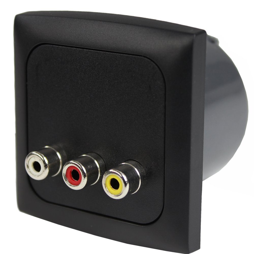 C-Line Steckdose für Audio und Video mit Cinch Buchsen, Einbaurahmen und Berührungsschutzdose in schwarz
