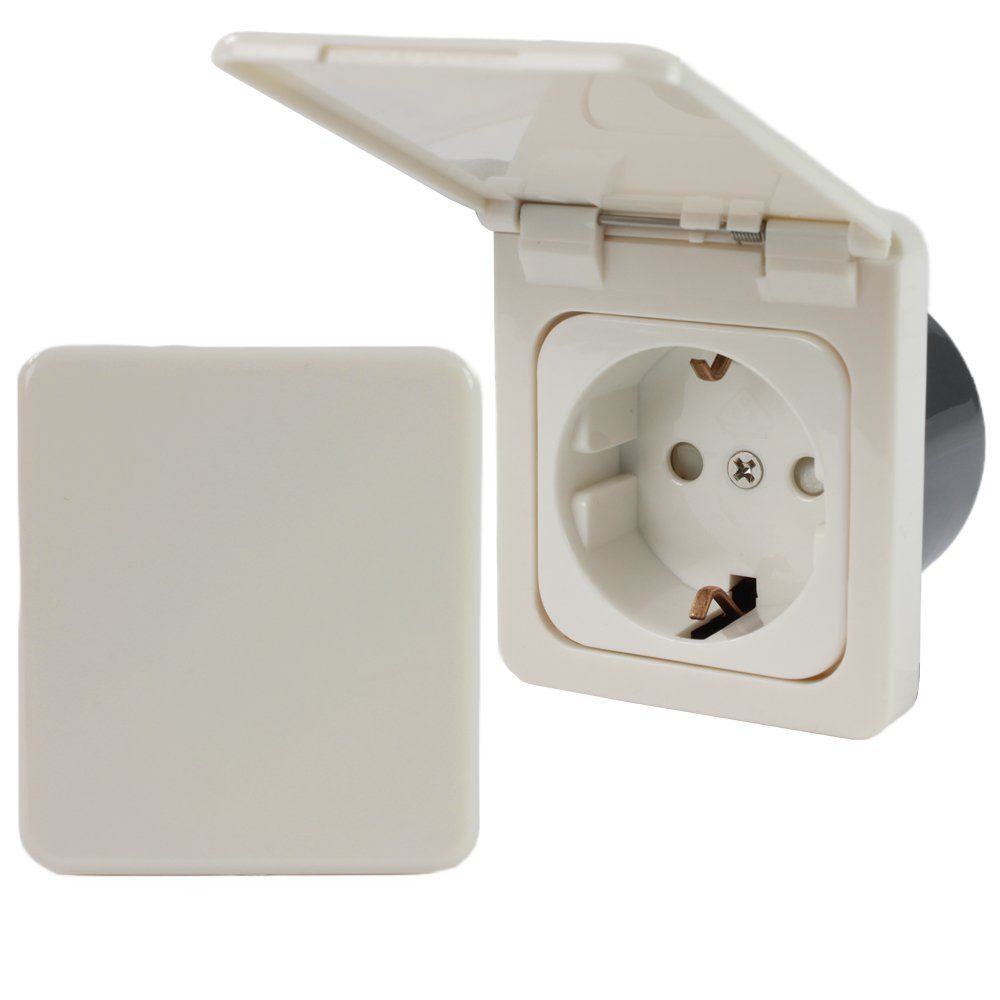 C-Line 230 Volt Schuko Steckdose mit Abdeckrahmen, Klappdeckel und Berührungsschutzdose in weiß