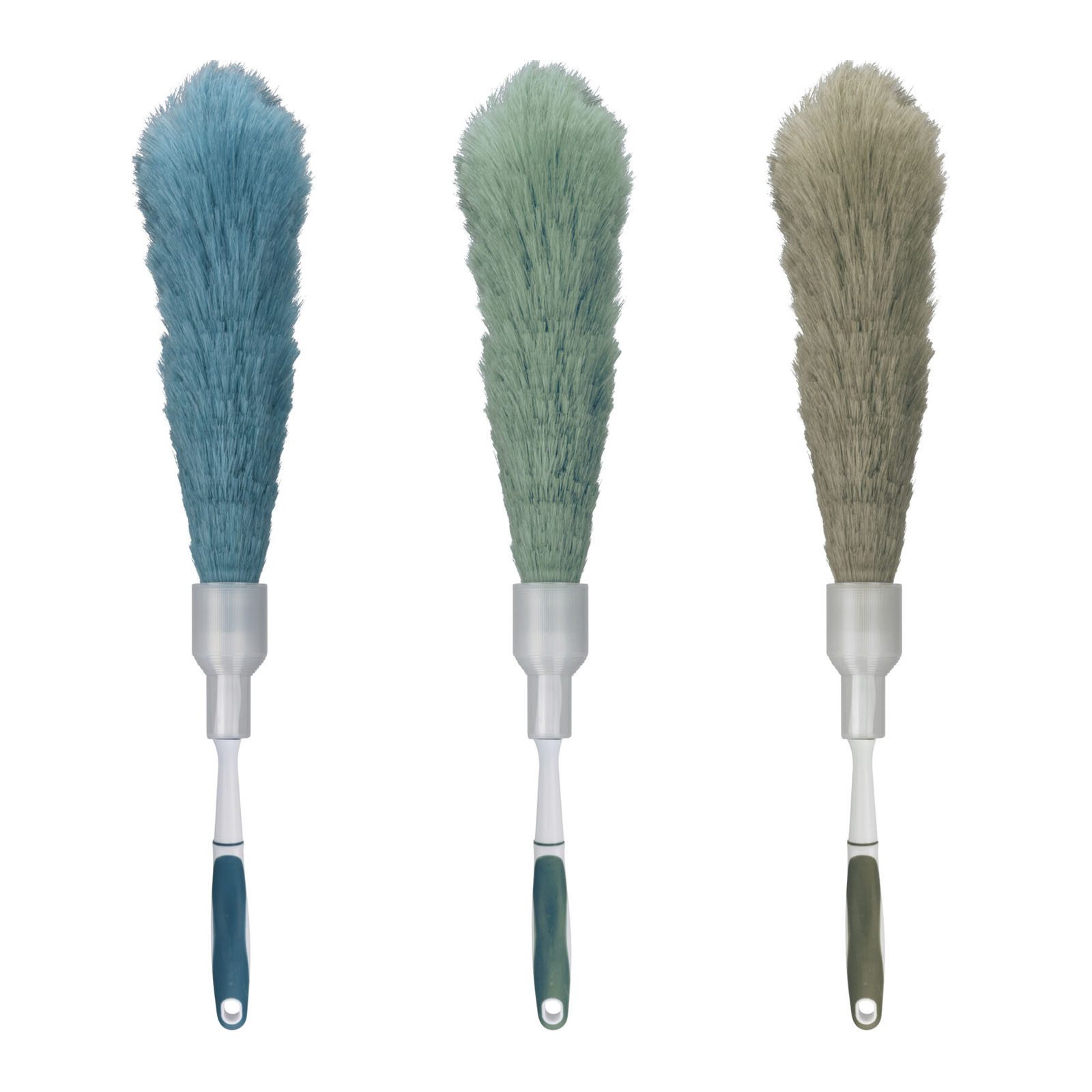 Entdecken Sie unser praktisches 3er Set Staubwedel, das Ihnen das Reinigen und Staubwischen zum Kinderspiel macht! Mit einer Länge von 61 cm erreichen Sie mühelos auch schwer zugängliche Stellen, während der ergonomische Griff für einen komfortablen Halt sorgt und die Reinigung effizienter gestaltet. Die Wedel kommen in drei ansprechenden Farben – grün, blau und weiß – und bringen frischen Schwung in Ihre Haushaltsreinigung. Dank der hochwertigen Materialien sind sie nicht nur langlebig, sondern auch besonders effektiv im Entfernen von Staub und Schmutz. Ein besonderes Highlight ist die ausfahrbare Kunststoff Schutzhülle, die die Staubwedel nach Gebrauch schützt und eine hygienische Aufbewahrung ermöglicht. So bleiben die Wedel immer einsatzbereit und sauber. Verleihen Sie Ihrem Zuhause den Glanz, den es verdient, und genießen Sie die einfache Handhabung unserer Staubwedel! Ideal für alle, die Wert auf Sauberkeit und Komfort legen.