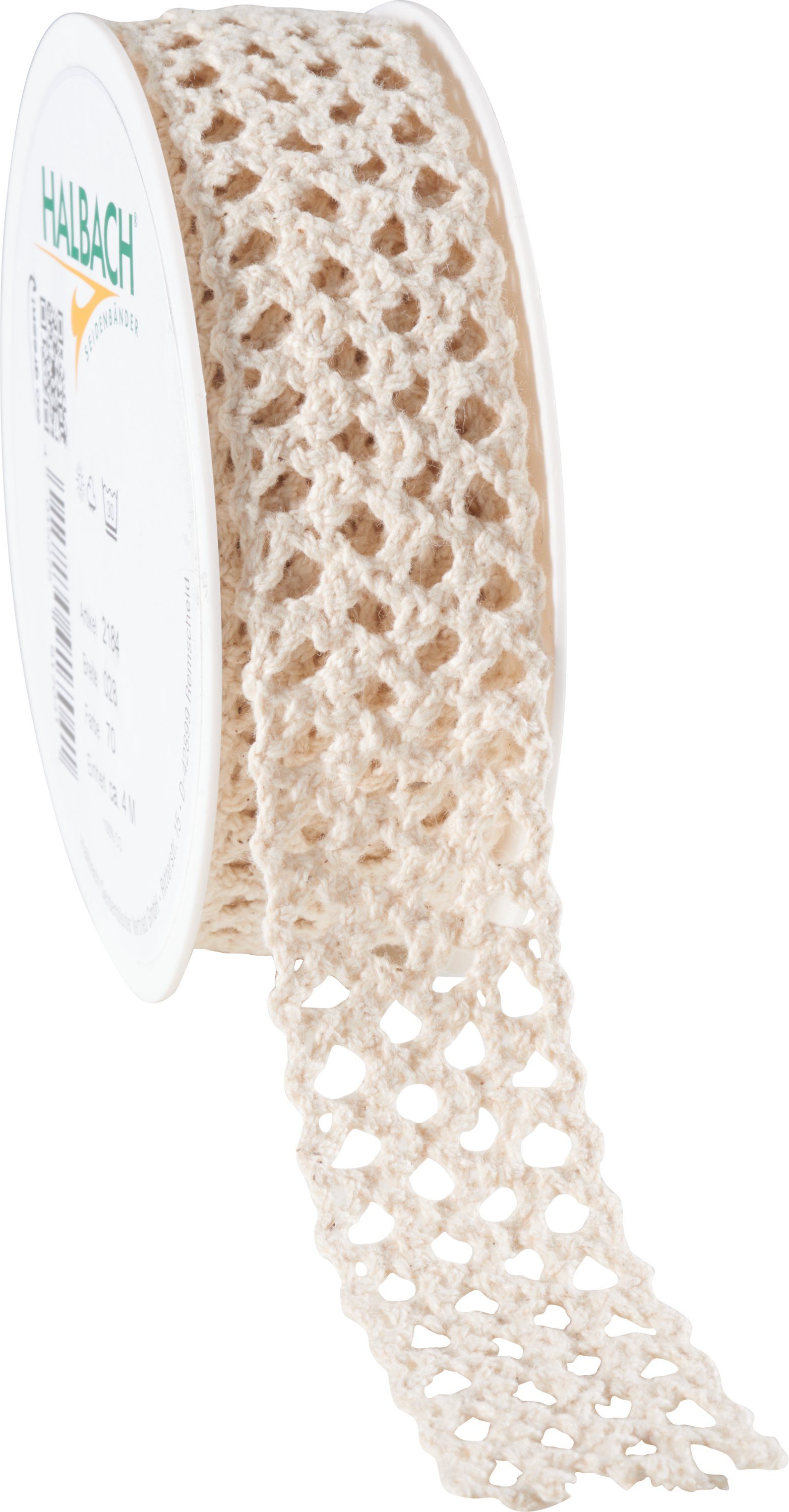Band 'Makramee', ca. 28 mm breit und ca. 4 m lang aus 100 % Baumwolle. Das gehäkelte Spitzenband ist besonders robust und auch für den Außenbereich geeignet. Es bleicht nicht aus und färbt nicht ab. Das beige Makramee-Band eignet sich für die klassischen Floristikdekorationen wie Sträuße, Gestecke und Kränze, aber auch für die Gestaltung von Vasen und als Tischdekoration im Landhausstil. Mit Streuteilen, Holzelementen und Trockenblumen wird die Wohndeko prima abgerundet.