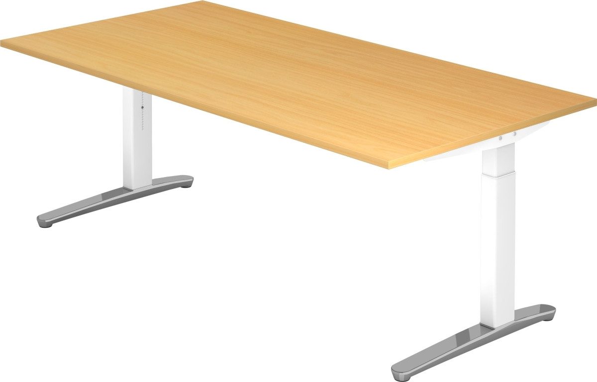 HAMMERBACHER Schreibtisch Schreibtisch C-Fuß 200x100cm Buche/Weiß-Alu poliert