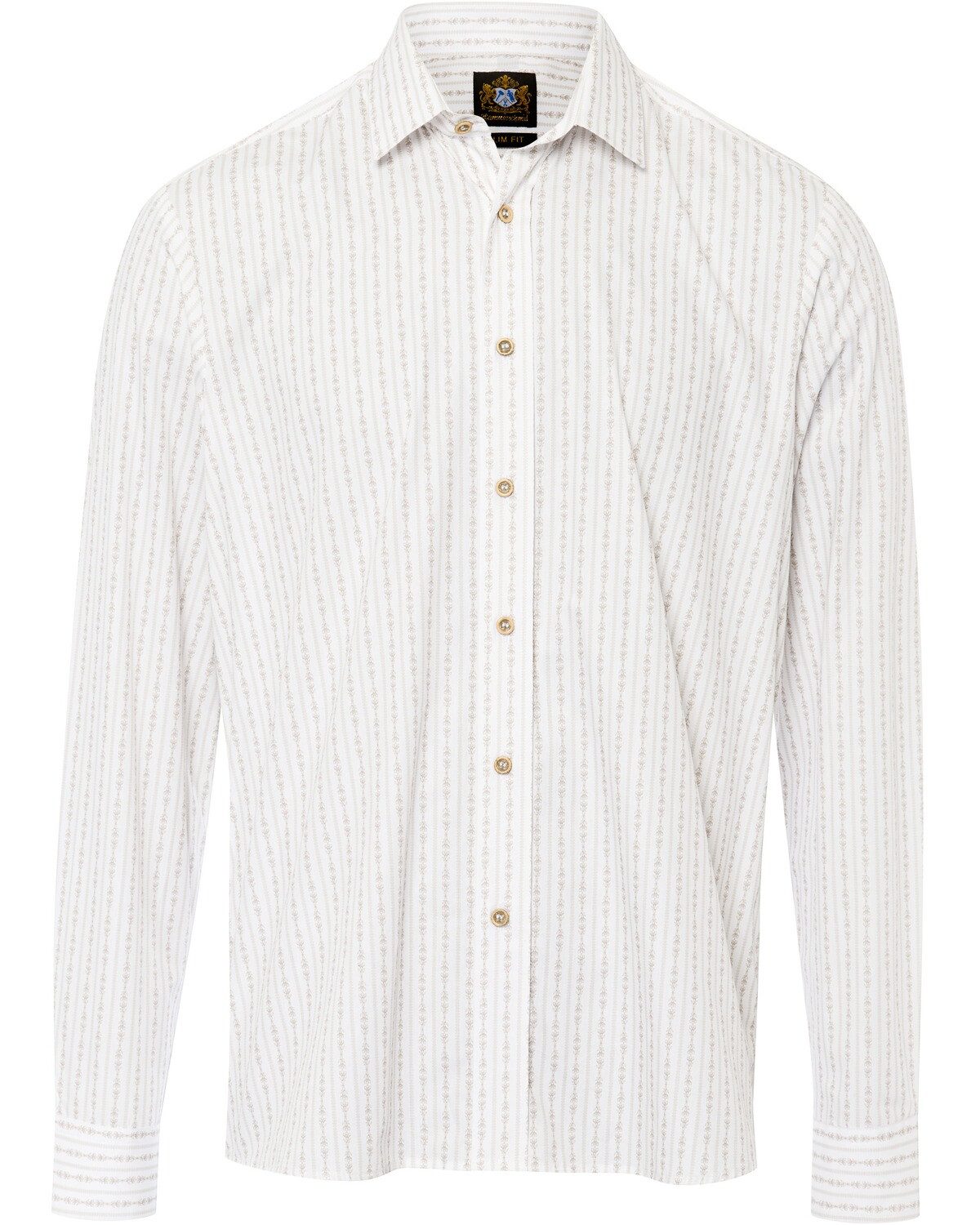 Das Slim Fit Herren Trachtenhemd von Hammerschmid vereint traditionelles Design mit modernem Schnitt und bietet so eine stilvolle Option für festliche Anlässe. Das ansprechende Blumenrankenmuster verleiht dem Hemd eine elegante Note, während der Kentkragen und die 1-Knopf-Manschetten mit Verstellknopf für eine anpassbare Passform sorgen. Die geknöpften Schlitze an den Manschetten runden das Gesamtbild harmonisch ab und machen das Hemd zu einem echten Blickfang. Hergestellt aus reiner Baumwolle, bietet das Trachtenhemd nicht nur eine ansprechende Optik, sondern auch hohen Tragekomfort. Der Slim Fit Schnitt sorgt für eine schlanke Silhouette und lässt sich sowohl zu traditionellen Trachten als auch zu modernen Outfits kombinieren. Ideal für festliche Anlässe, Bierfeste oder gemütliche Zusammenkünfte, lässt sich das Hemd vielseitig einsetzen und verleiht jedem Look einen Hauch von bayerischer Tradition. Die sorgfältige Verarbeitung und die Liebe zum Detail machen dieses Trachtenhemd zu einem unverzichtbaren Bestandteil der Herrenmode. Ob in Kombination mit einer Lederhose oder einer eleganten Chino, das Hammerschmid Trachtenhemd setzt stilvolle Akzente und sorgt dafür, dass der Träger immer gut gekleidet ist. Ein zeitloses Kleidungsstück, das sowohl Tradition als auch modernen Stil perfekt vereint. Oberstoff: 100% Baumwolle