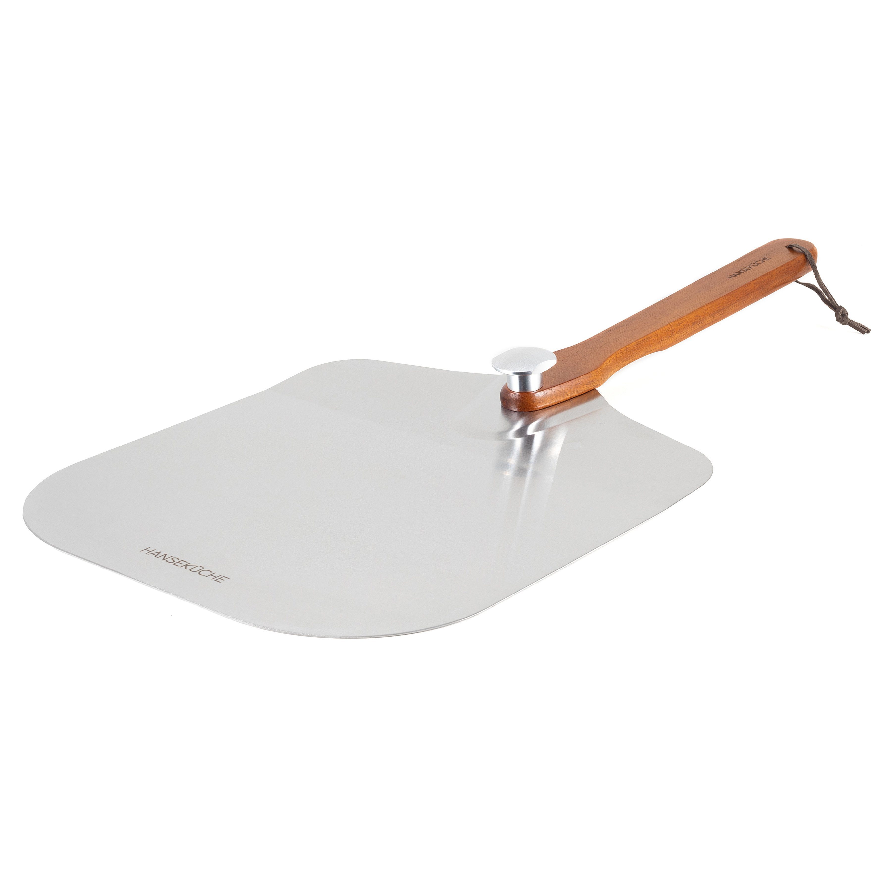 Robuster Edelstahl und ein Griff aus Akazienholz bzw. eloxiertes Aluminium gewährleisten eine lange Lebensdauer unserer Pizzaschaufel.
