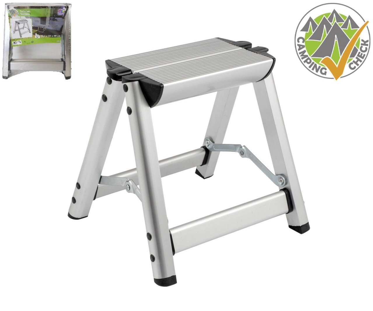 Die einfach zu verstauende, klappbare Trittstufe von Happy People ist ein praktischer Helfer, der den Alltag enorm erleichtern kann: Der Tritthocker aus hochwertigem, ultraleichtem Aluminium eignet sich optimal zum einfachen Ein- und Aussteigen in das Wohnmobil oder um Dinge auf hohen Ablagen und Regalen ohne Hilfe leichter erreichen zu können.