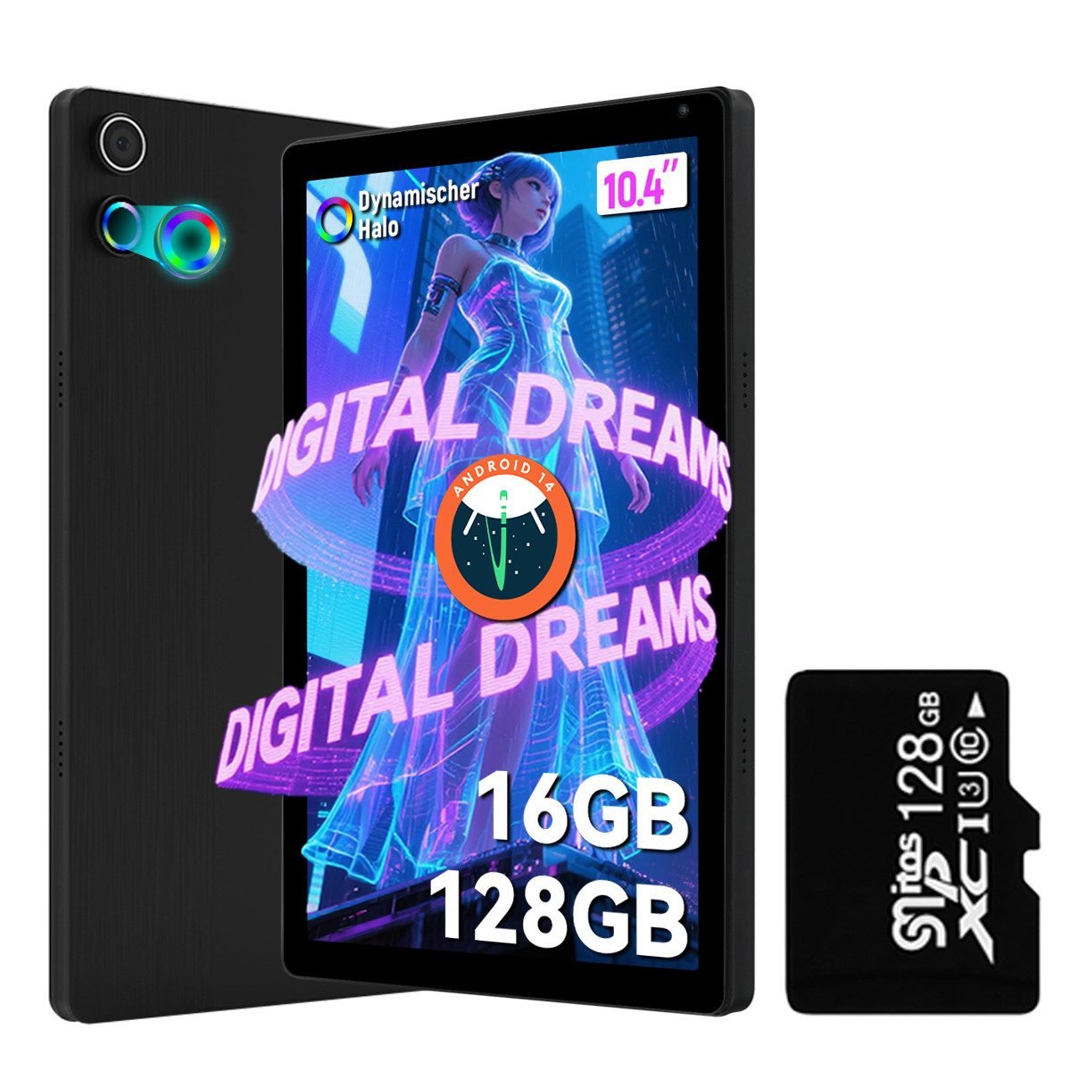 Der Android 15 Tablet PC integriert eine leistungsstarke Speicherkombination aus 20 GB RAM (3 GB physisch + 17 GB virtuell) und 128 GB ROM mit einer Erweiterung auf bis zu 1 TB für die Micro-SD-Karte (Micro-SD-Karte nicht enthalten). Der extrem große RAM bietet viel Platz zum Ausführen von Anwendungen sowie zum Herunterladen und Speichern von Fotos, Filmen und Spielen.