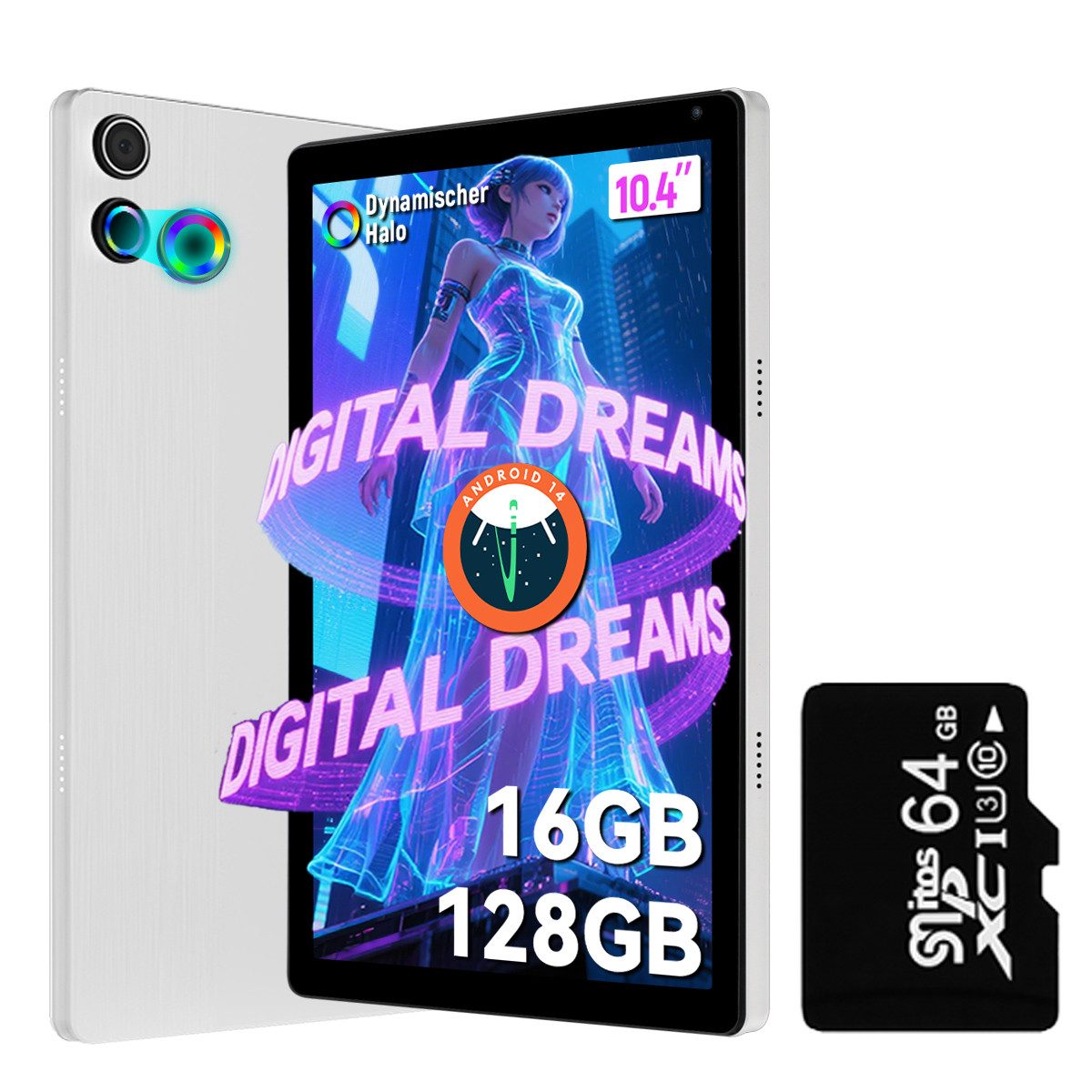 Wir bieten Ihnen Tablets mit MicroSD-Karten mit 64 GB und 128 GB Speicherplatz zur Auswahl an.